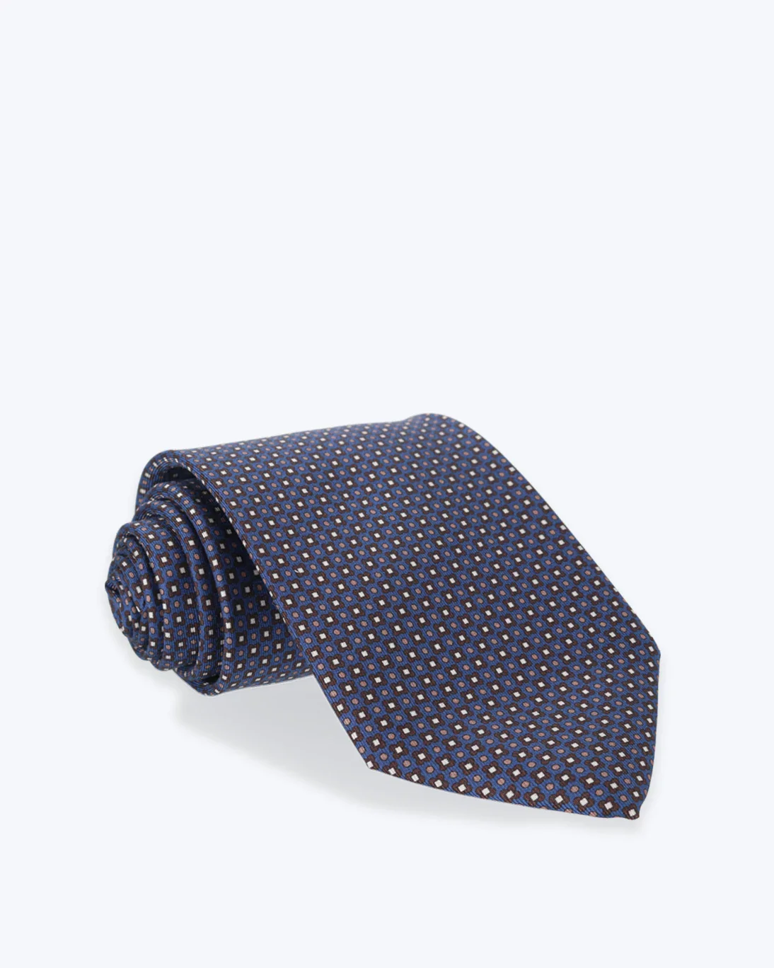 Corbata de la marca Fulham en color azul, con estampado de dibujos geométricos.