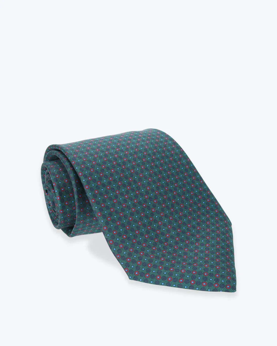 Corbata de la marca Fulham en color verde, con estampado de cÃrculos.