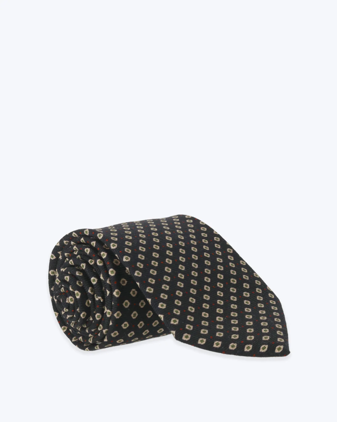 Corbata de seda y lana de la marca Fulham, en color navy con dibujos beige.