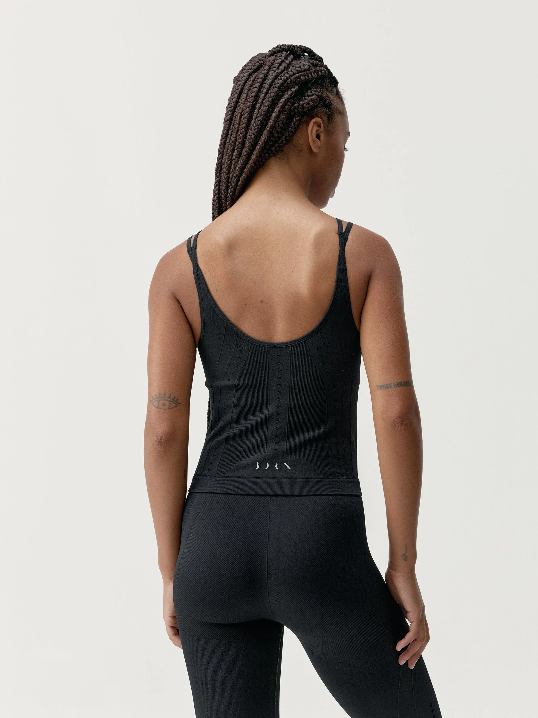 Camiseta seamless con top interior de sujeción media. Tejido “Air_Feel” segunda piel con tecnología 3D. Elegantes tirantes dobles. Diseño ligero y suave para mayor comodidad en tus movimientos. Incluye copas extraíbles. Tejido sostenible Seamless 3D sin costuras. Fabricado en máquinas circulares electrónicas que minimizan los residuos, garantizan un ajuste ceñido y un confort excepcional. Efecto segunda piel.