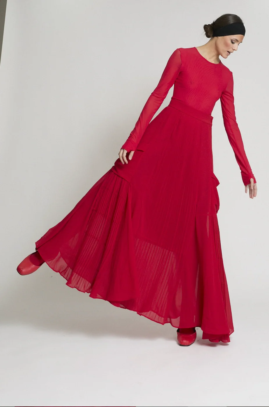 Falda plisada con rayas laterales en color rojo con bolsillos ambos lados