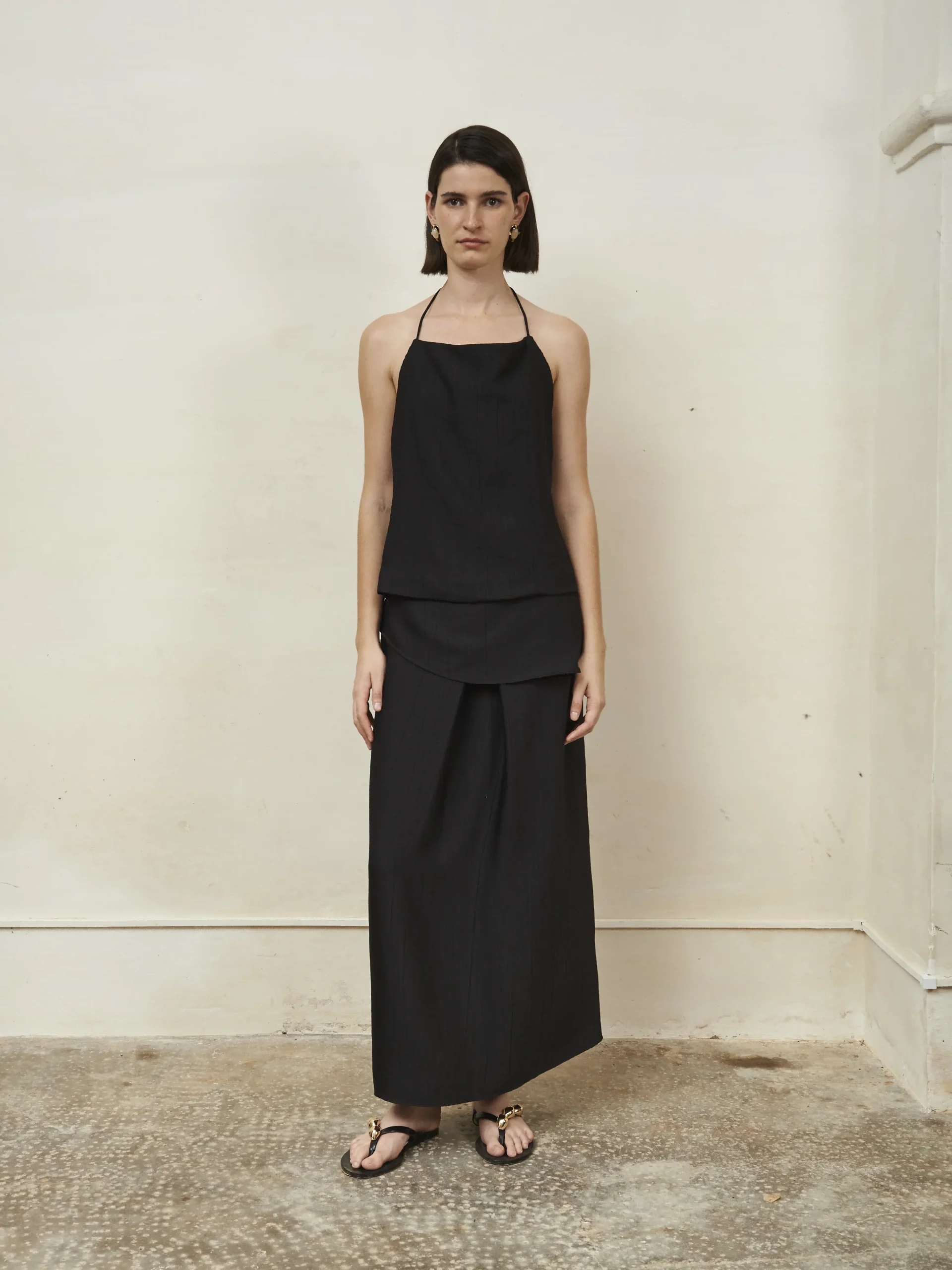 Confeccionada con maestría en un tejido ligero, la FALDA TRIQUETRA NEGRA es perfecta para el día a día. Su abertura en la espalda le aporta un toque de elegancia, mientras que el cierre de cremallera garantiza un ajuste seguro. Versátil y elegante, es la prenda básica perfecta que combina con todo tu armario.