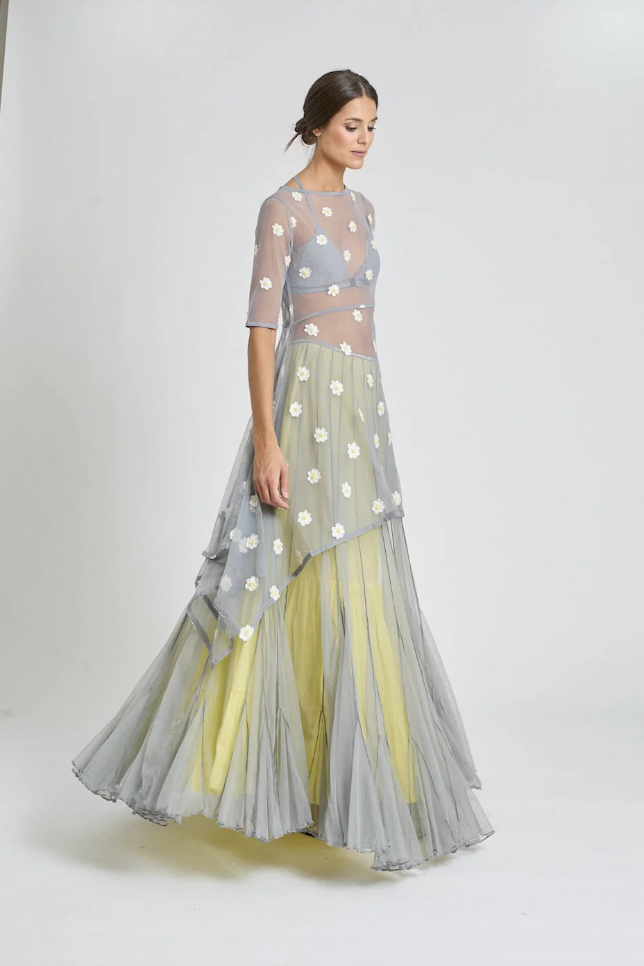 Falda de tul con godets y forro en contraste