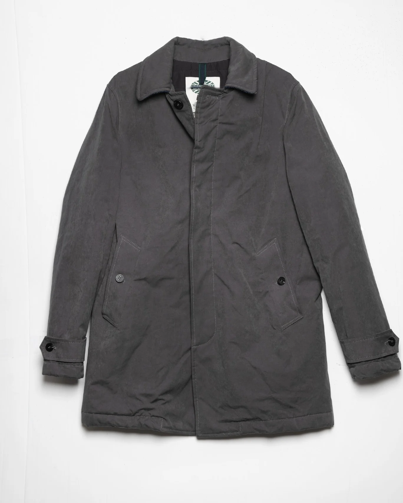 Cuenta con cierre de botones invisibles, bolsillos laterales con cierre con botón, y dos más en el interior con cierre de cremallera.
