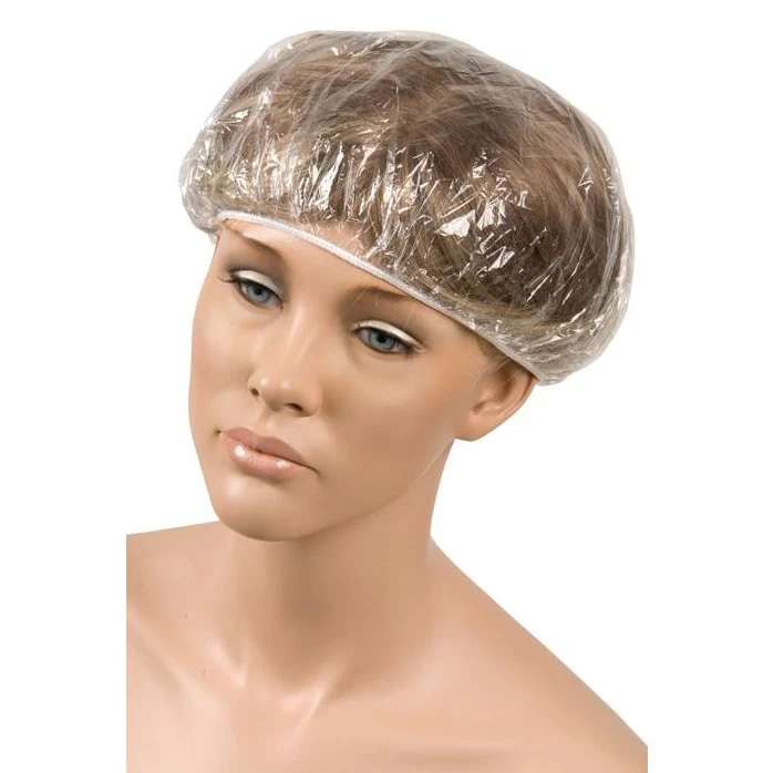 El Gorro de ducha estampado está fabricado en plástico impermeable con goma elástica. Colores estampados en rojo y azul.