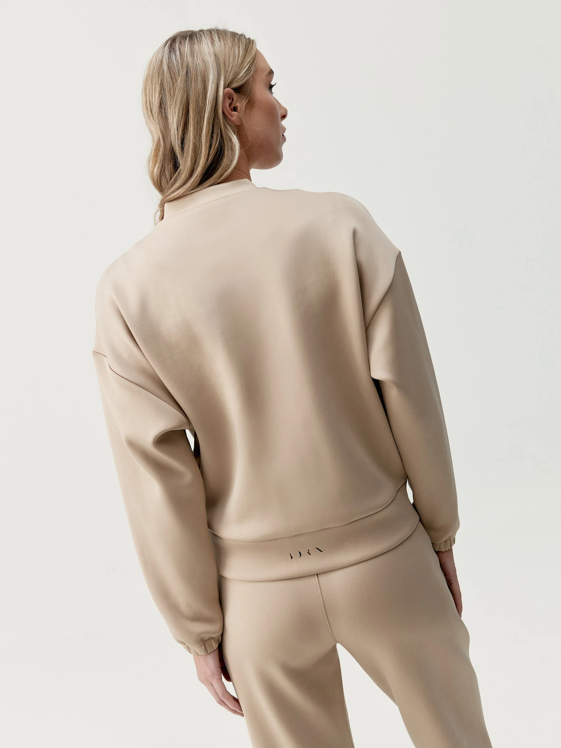 Chaqueta bomber deportiva con cremallera. Bolsillos parche en el pecho y bolsillos laterales. Patrón holgado y hombro caído. Tejido «Sku_Cloud» confortable de máxima comodidad. Diseño muy versátil y confortable para toda actividad.