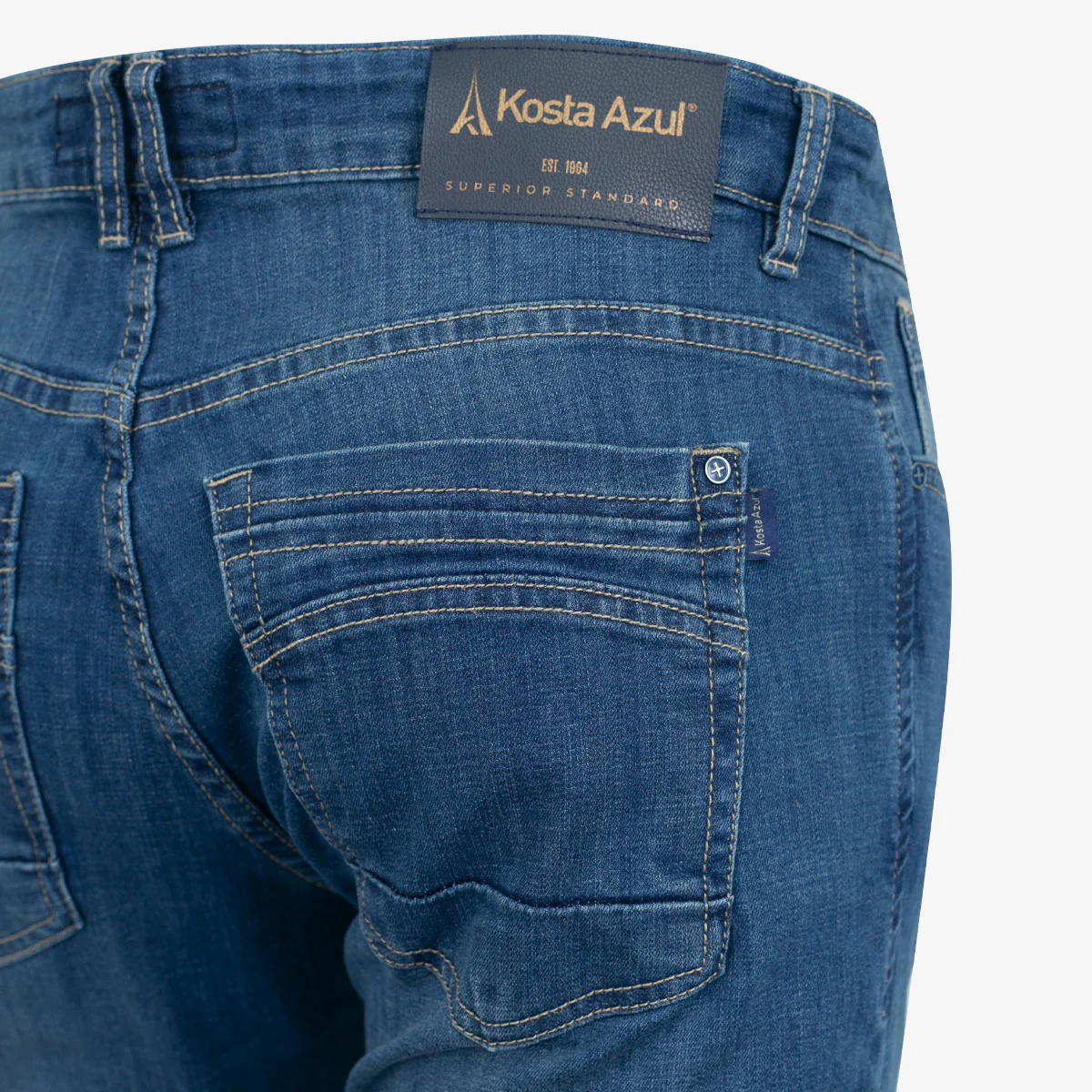 - Incorpora un acabado en tono azul claro con ligera variación en el lavado para un estilo casual y contemporáneo.