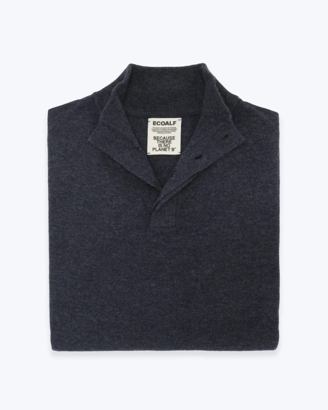 Jersey de la marca Ecoalf en color azul jaspeado, con un elegante diseño de cuello con cuatro botones ocultos bajo una tapeta.