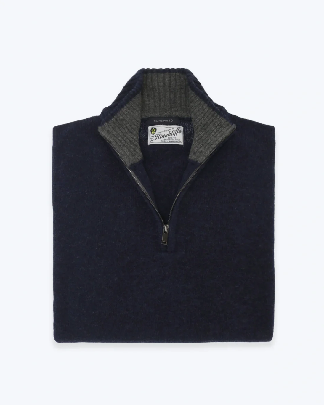 Jersey de la marca Homeward en color azul con el interior del cuello en gris, con un elegante diseño de cuello con cremallera.