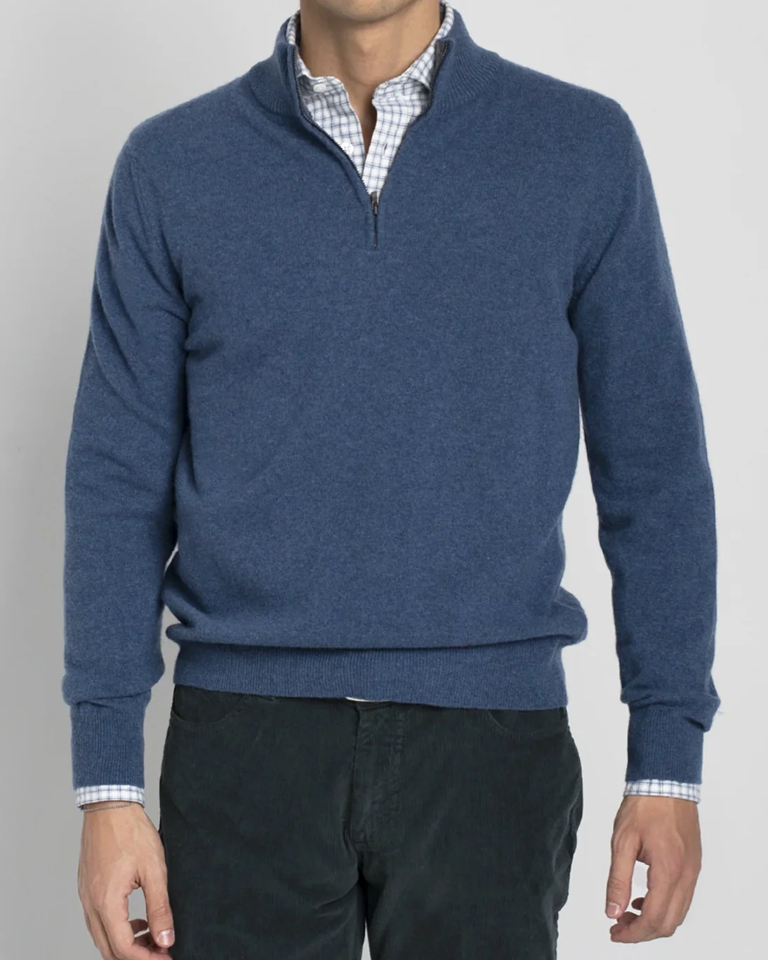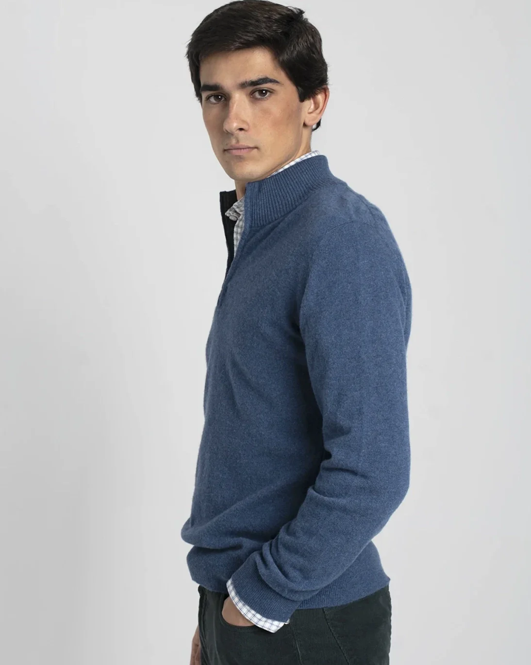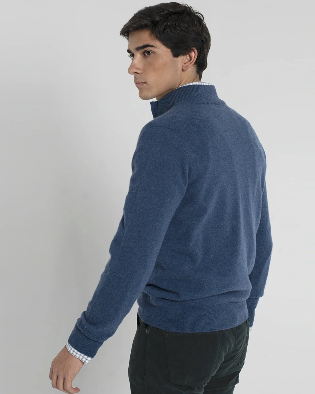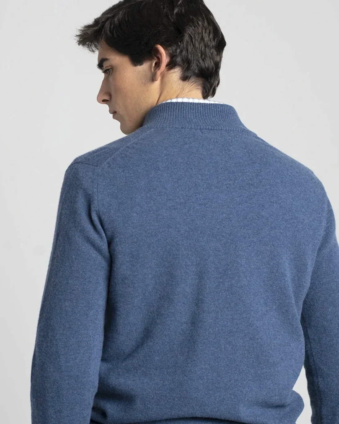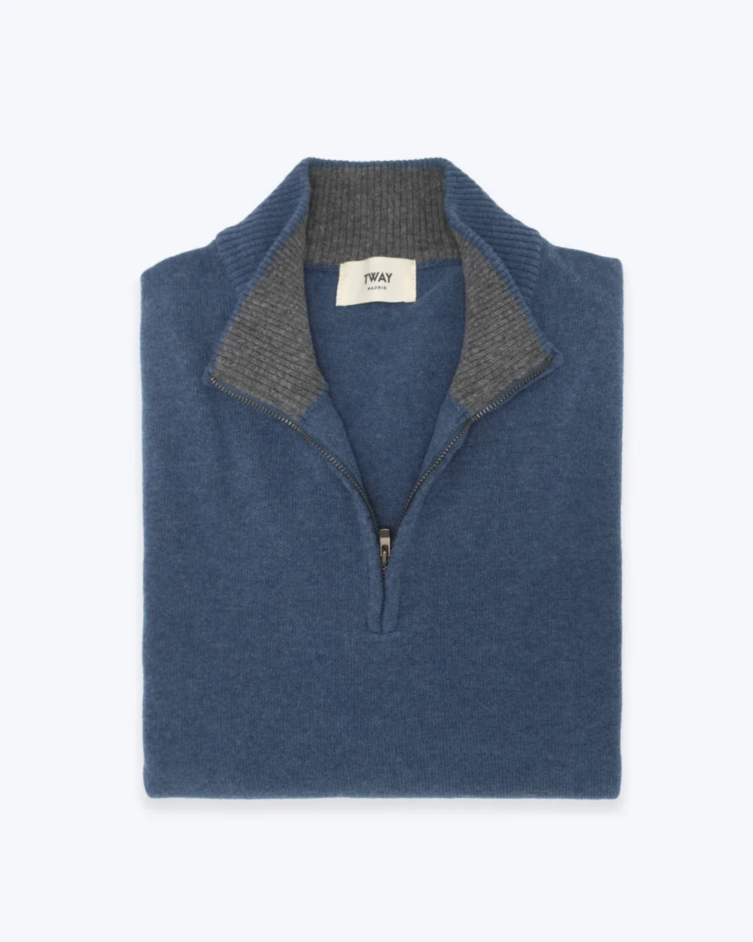 Jersey de la marca Tway en color azul con el interior del cuello en gris, con un elegante diseño de cuello con cremallera.