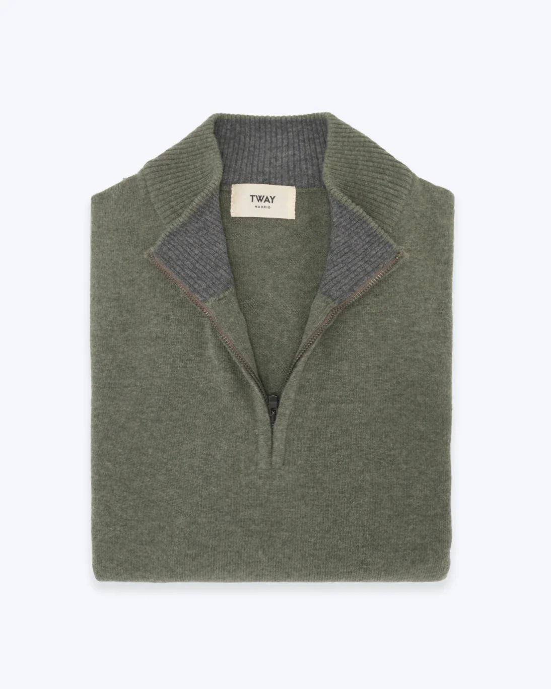 Jersey de la marca Tway en color verde claro con el interior del cuello en gris, con un elegante diseño de cuello con cremallera.