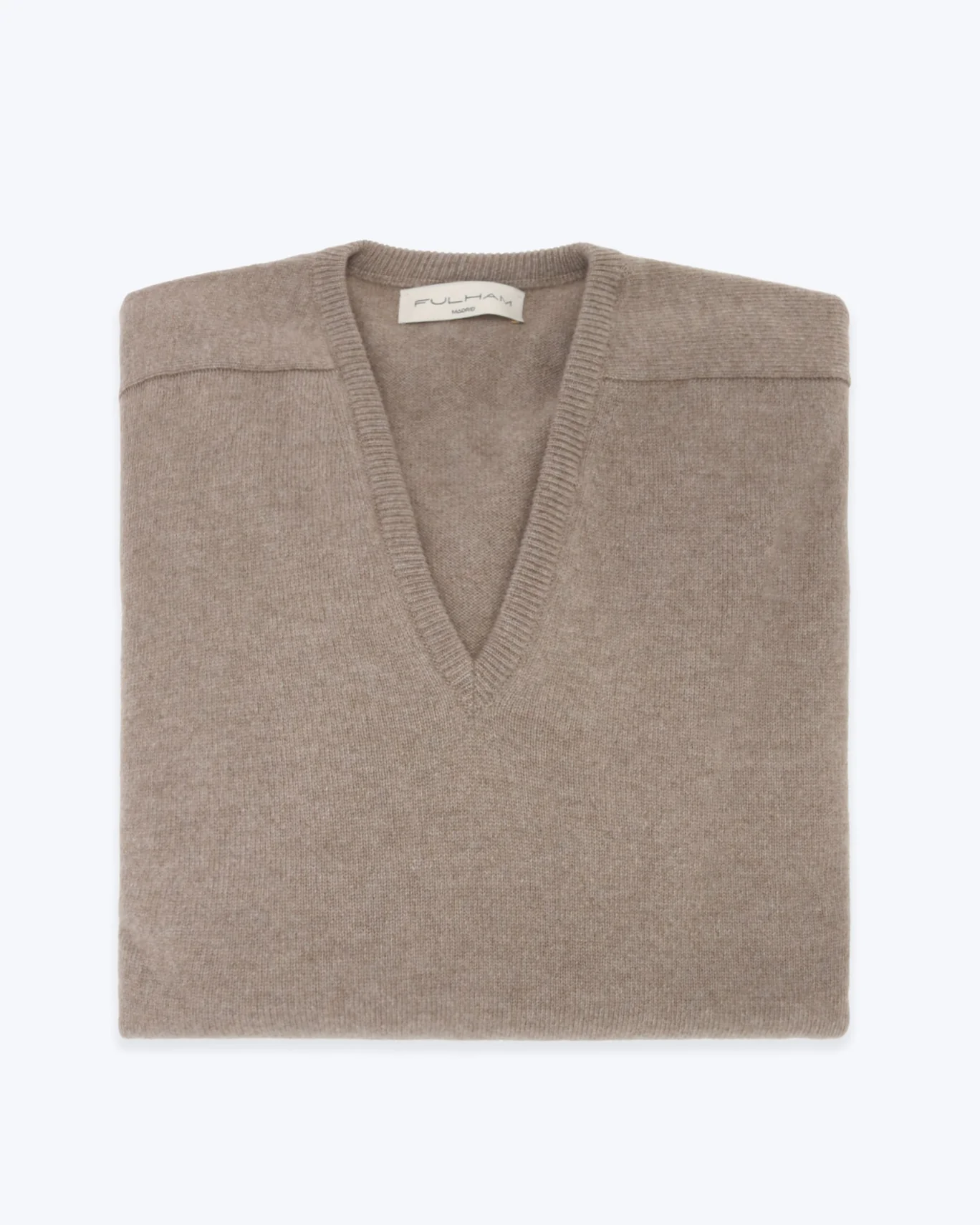Jersey beige con el cuello pico, de la marca Fulham, con acabados acanalados.