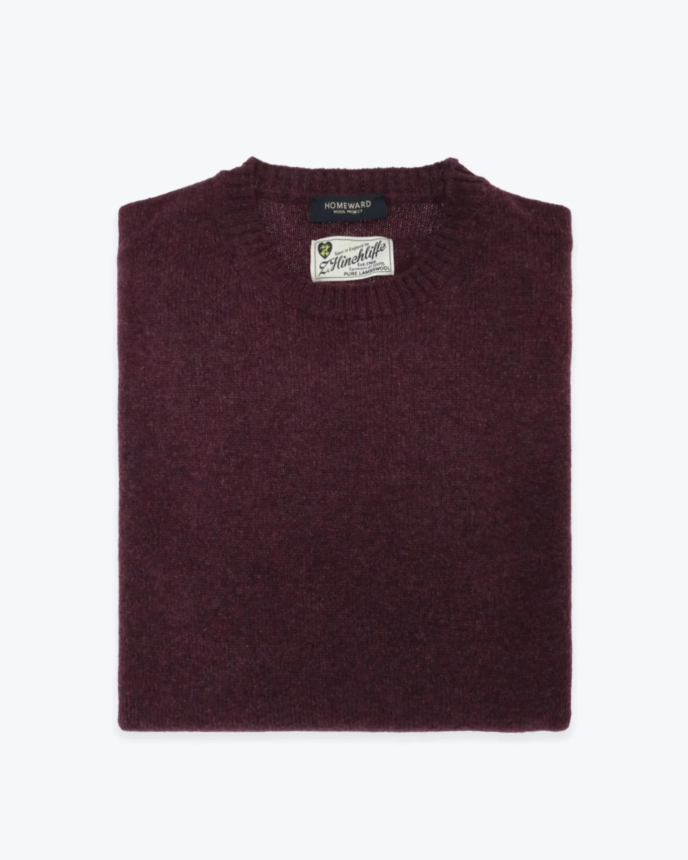 Jersey de lana de la marca Homeward en granate, con cuello caja.