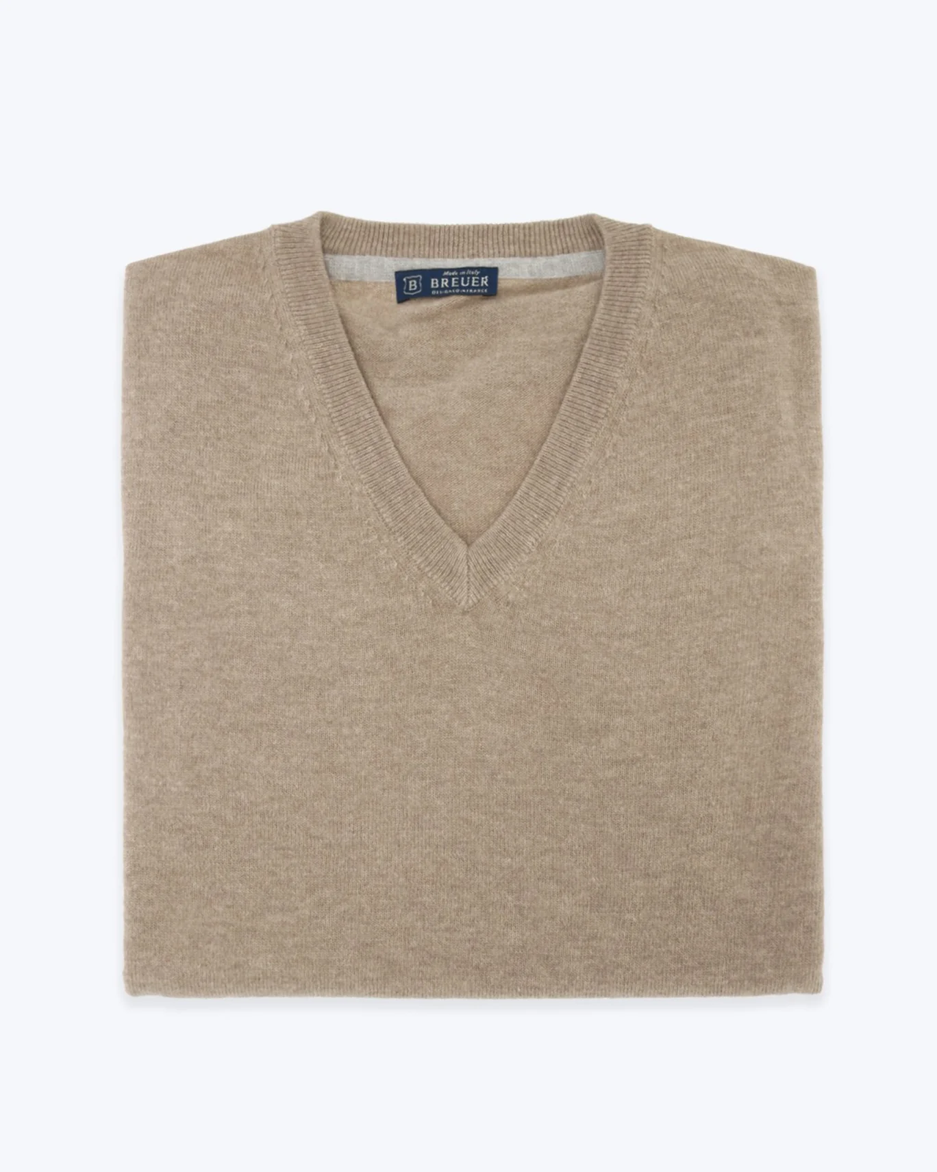 Jersey de pico de la marca Breuer en color beige, confeccionado en tejido suave de lana.