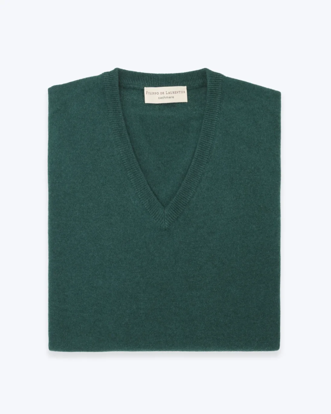 Jersey cashmere de pico en color verde de la marca Filippo de laurentis.