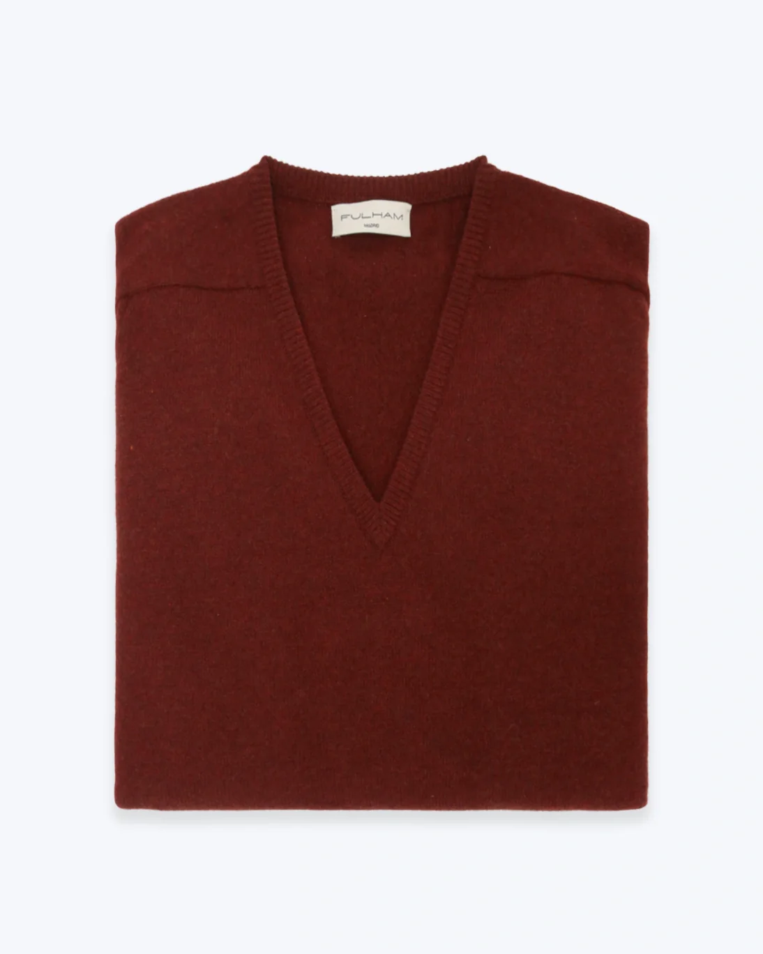 Jersey en color teja de la marca Fulham, con cuello en pico y acabados acanalados.