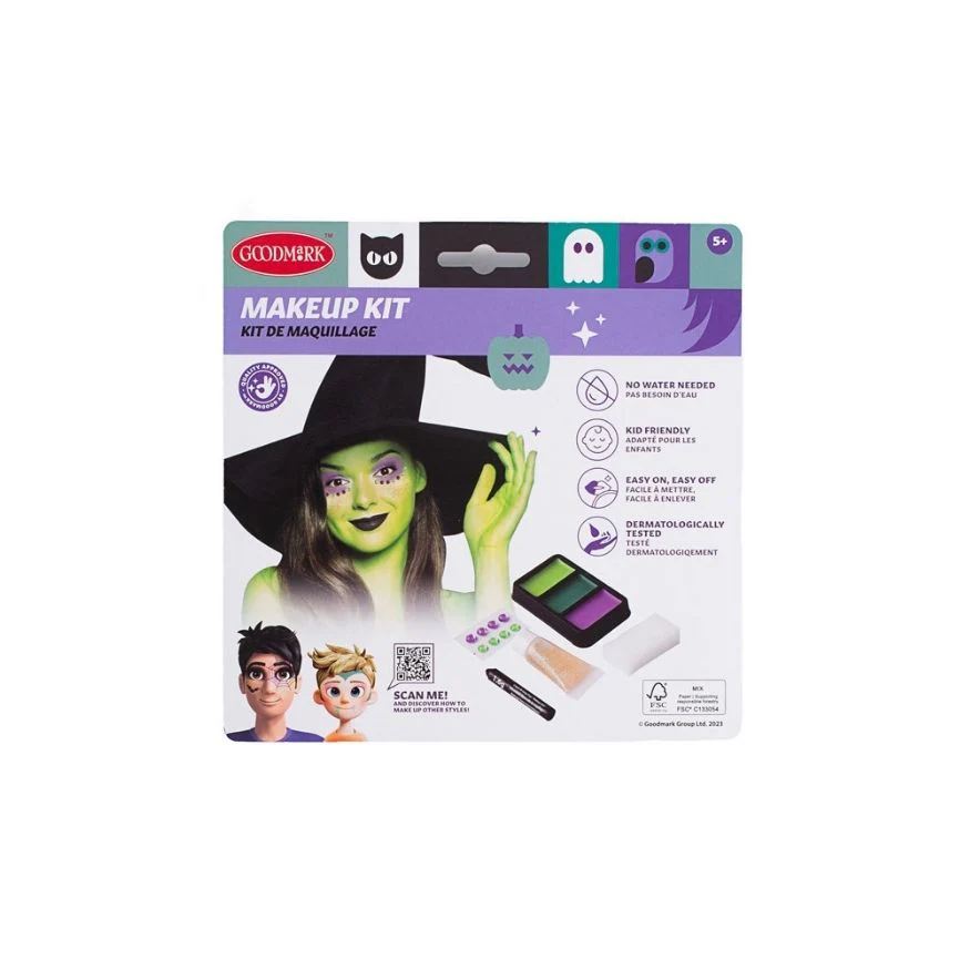 Maquillaje Halloween de bruja glamour, contiene todo lo necesario para crear un look de bruja glamurosa pero terrorífica.