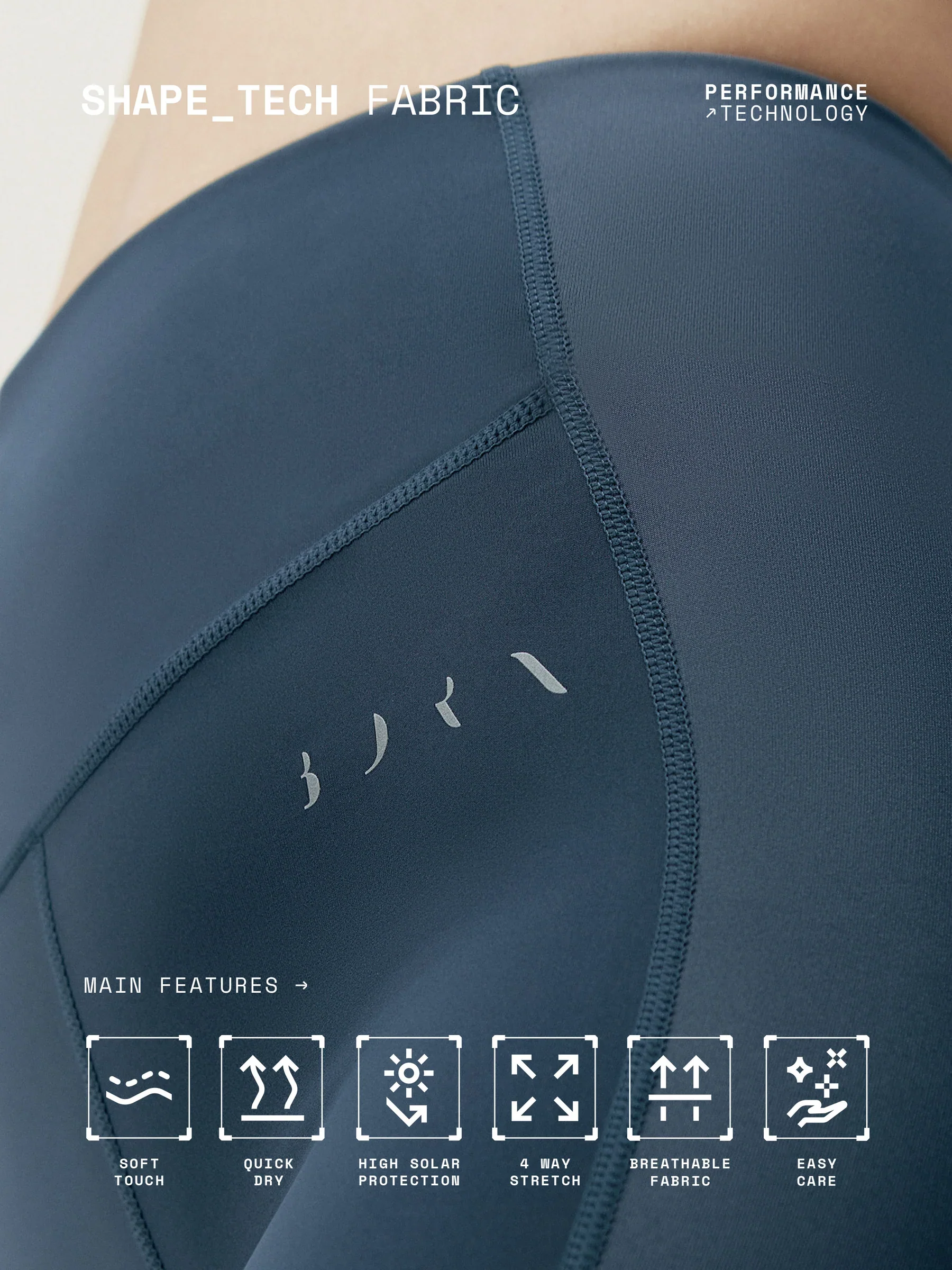 Legging largo. Tejido “Shape_Tech” compacto y ligero. Corte laser y motivo de perforados en el bajo. Bolsillos laterales.
