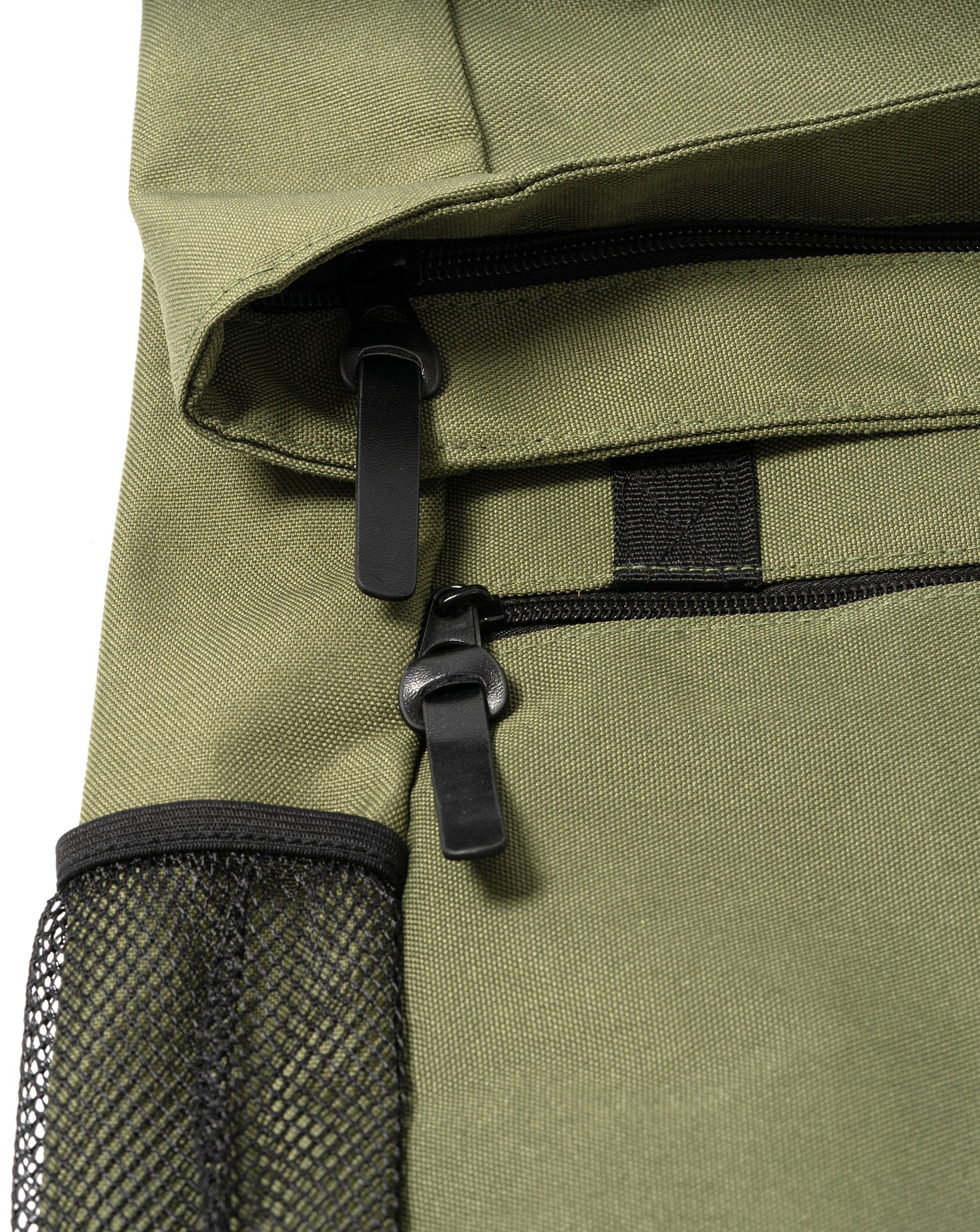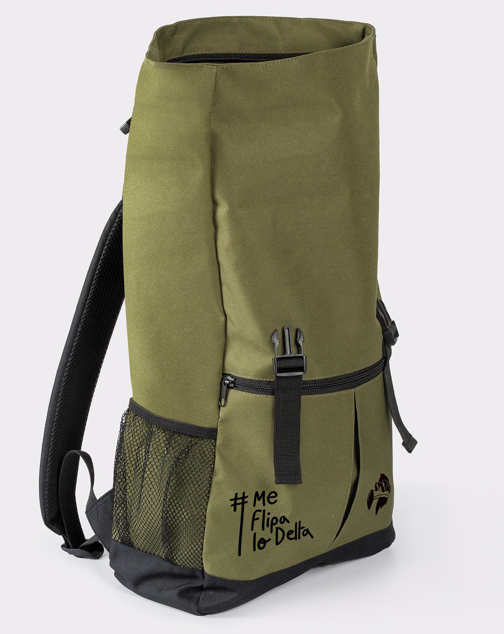 Mochila versátil y resistente, perfecta para el uso diario o para aventuras por el Delta. Fabricada en un duradero material en color verde caqui, esta mochila cuenta con un diseño de cierre enrollable que ofrece flexibilidad en la capacidad de almacenamiento. Incluye un bolsillo frontal con cremallera para acceso rápido a objetos pequeños y un compartimento lateral de malla ideal para llevar botellas o accesorios. Las correas ajustables y acolchadas aseguran un transporte cómodo, mientras que el fondo reforzado en color negro añade durabilidad extra. Una opción práctica y con estilo para mantener tus pertenencias organizadas y seguras en todo momento.