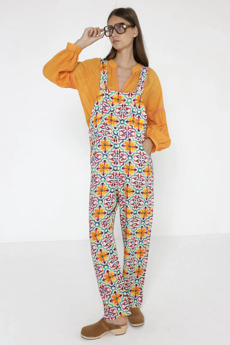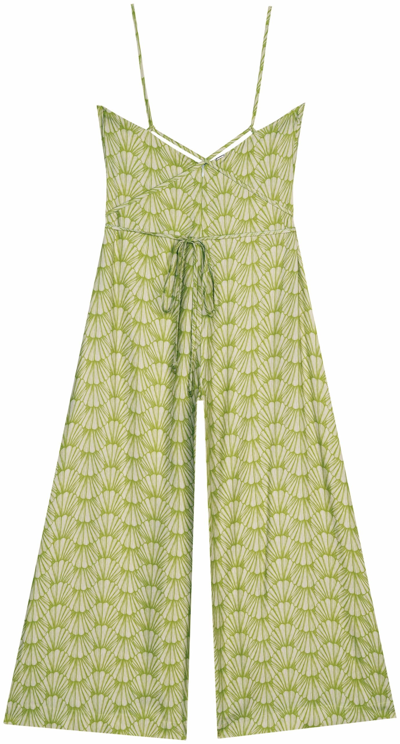 Siente la ligereza del movimiento con este mono midi de viscosa. Su ajuste fluido adquiere un toque moderno a través del escote recto. El estampado inspirado en Filipinas te envuelve en una belleza exótica, resaltando la belleza de los tirantes que crean un diseño en la espalda, terminando en un delicado lazo en la cintura. Combínalo con sandalias de tiras para un look completo.