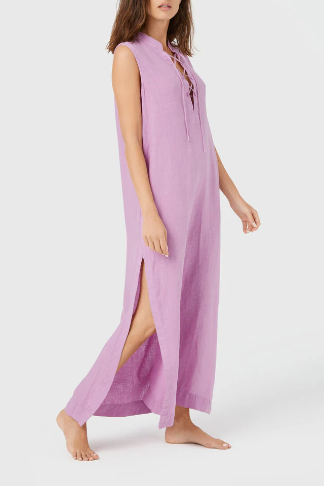 Una túnica larga de lino que brinda una opción cómoda y versátil para el uso diario.