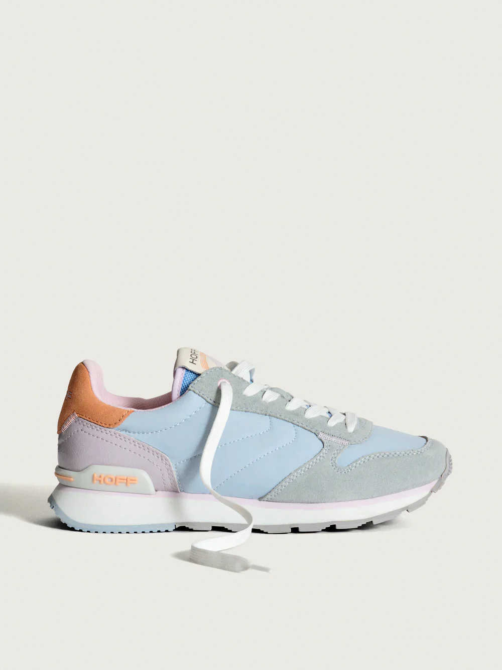 Sneaker de estilo ‘retro’ en combinación de materiales y colores. Detalle de logo bordado en la parte trasera. Cierre mediante cordones.