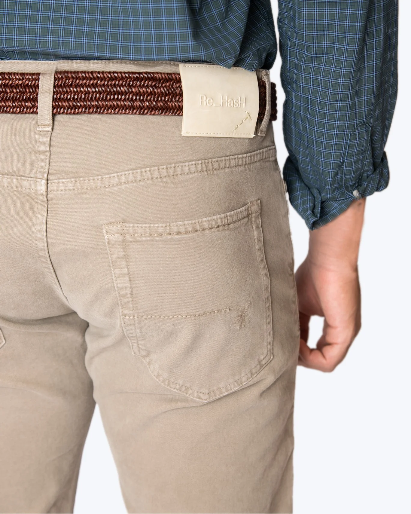 Pantalón cinco bolsillos de la marca Re-Hash, de color topo.