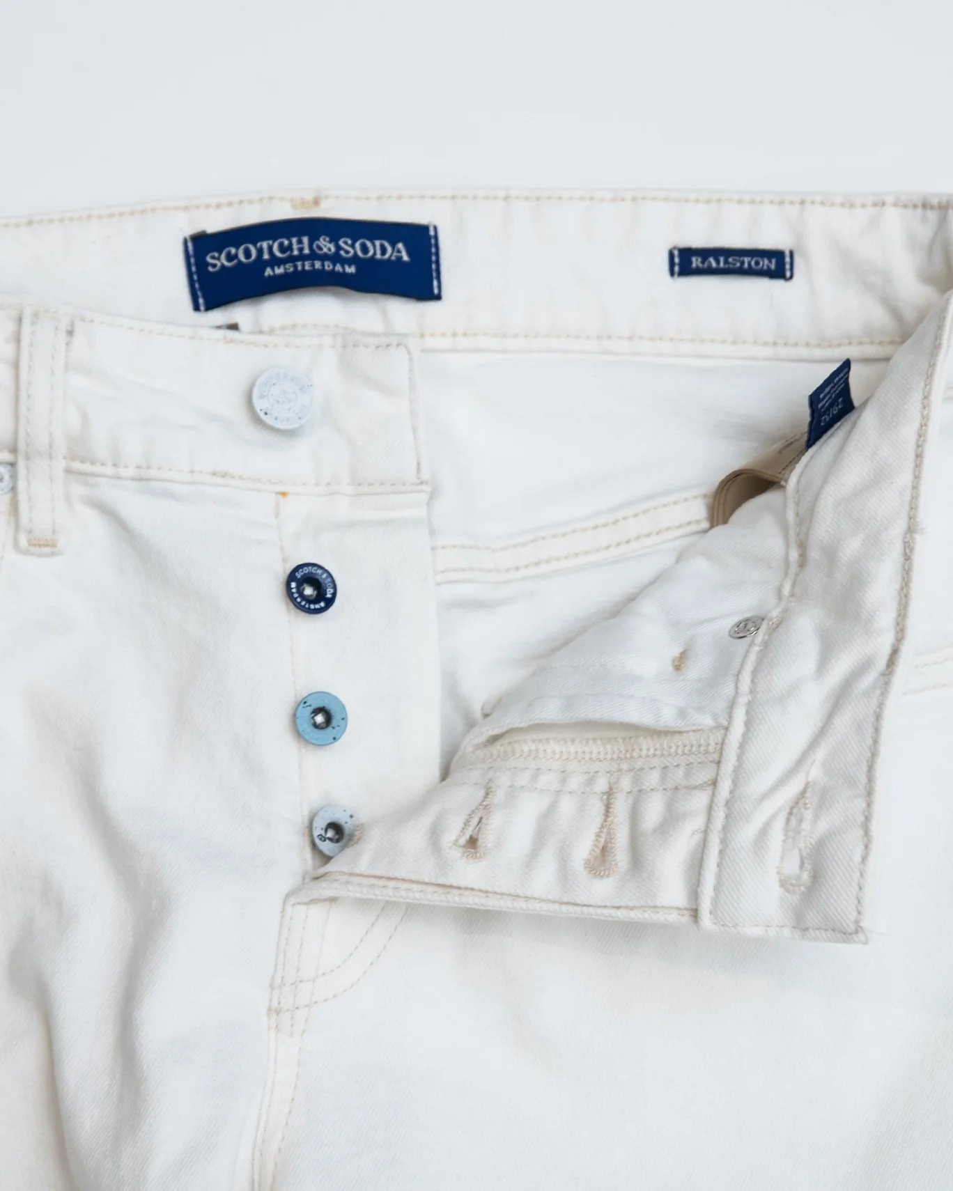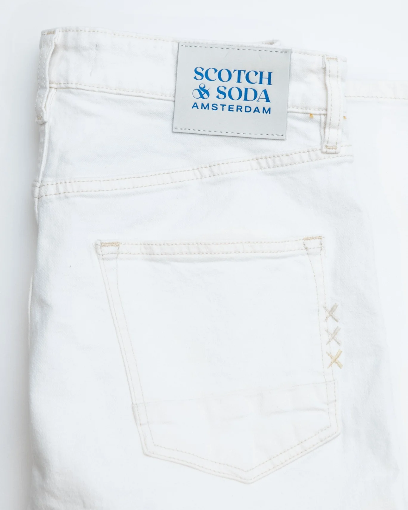 Pantalón de la marca Scotch & Soda en color blanco, modelo Ralston de entretiempo.