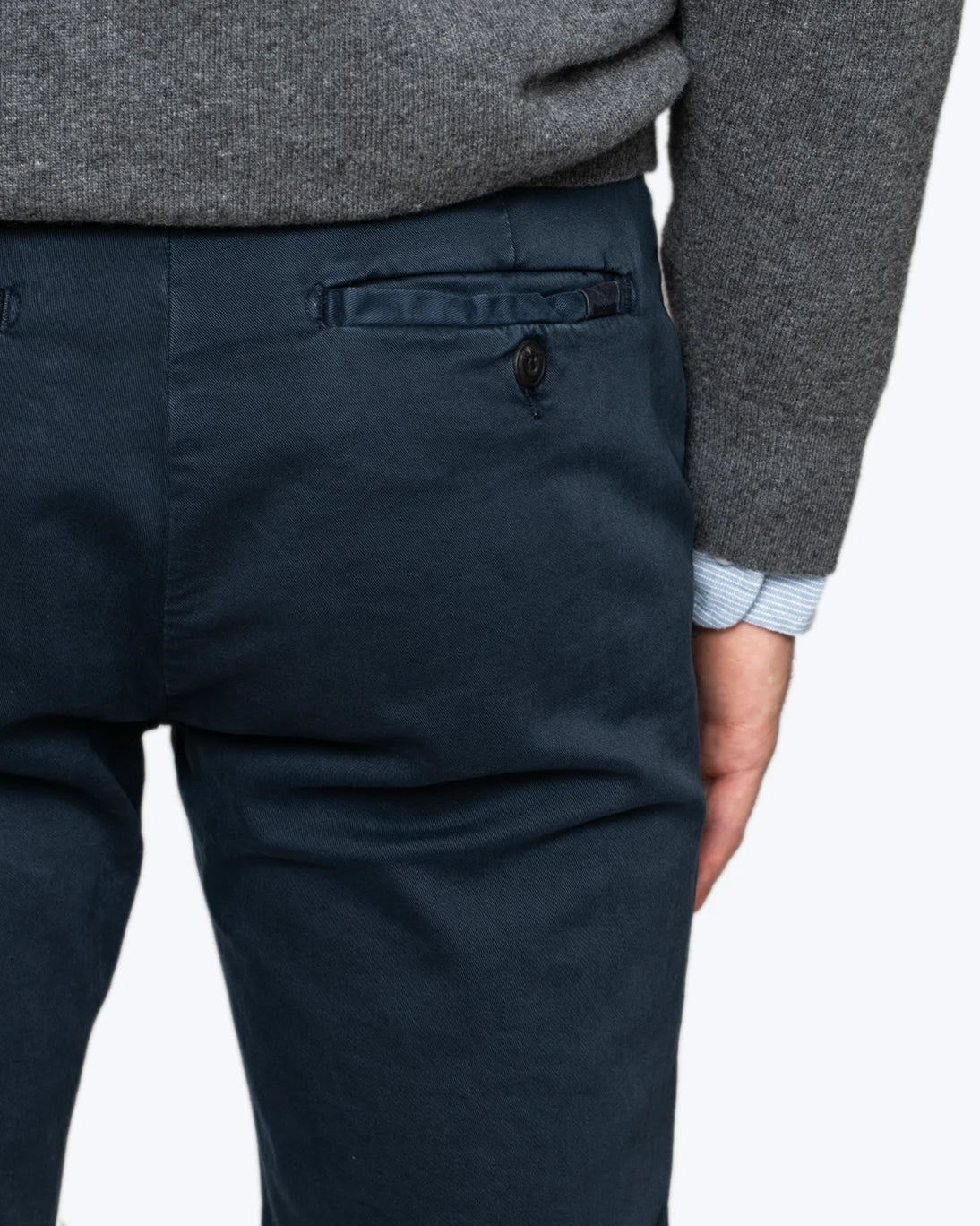 Pantalón chino en color azul de la marca Boombogie. Tiene un corte slim fit, que se ajusta de manera más entallada en cintura y cadera, con una pierna ceñida que aporta un estilo moderno y favorecedor sin perder comodidad.