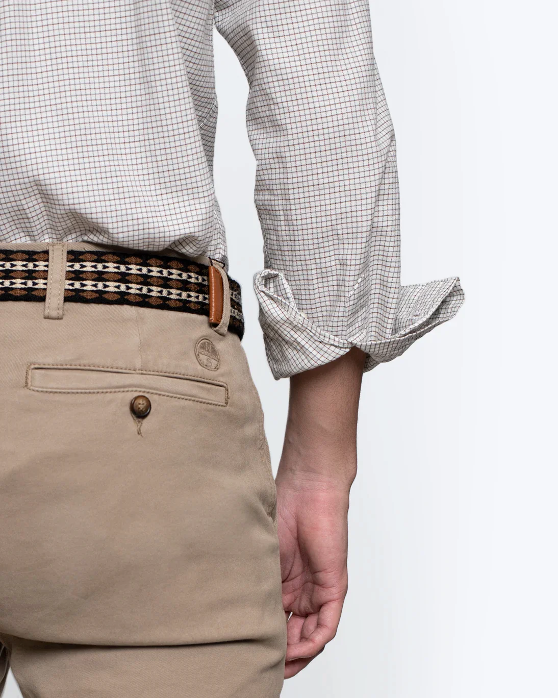 Está confeccionado en algodón con un pequeño porcentaje de elastano, lo que le aporta elasticidad y un extra de confort.