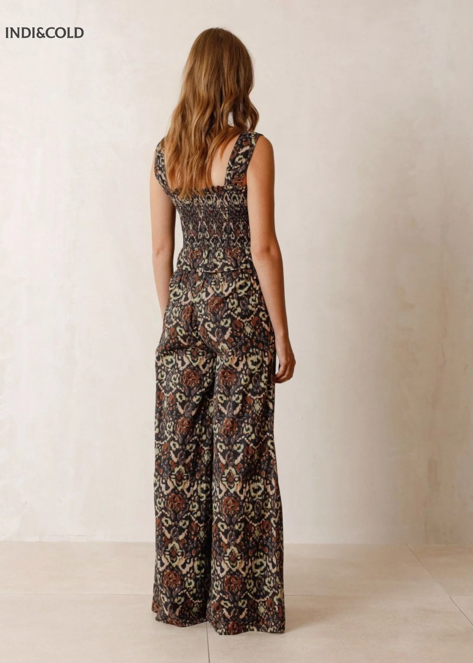 PANTALÓN PALAZZO CON PRINT ÉTNICO EN VOILE DE ALGODÓN VISCOSA