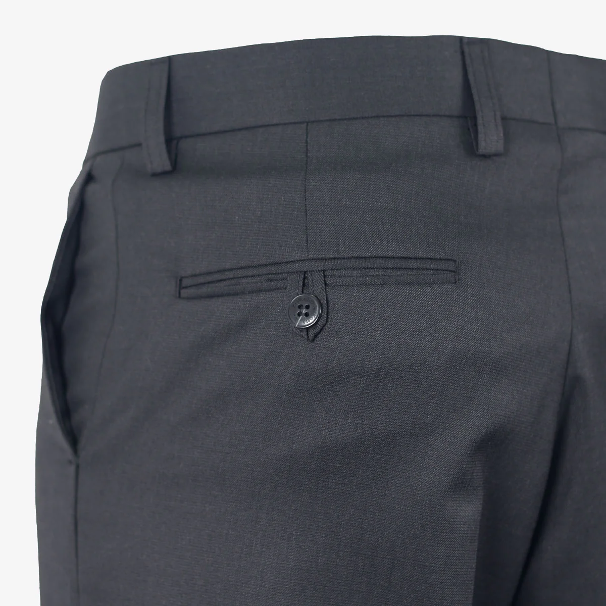 Este pantalón formal en tono negro profundo presenta una silueta regular que garantiza comodidad y un ajuste equilibrado para el día a día. Confeccionado en una mezcla de poliéster (80%) y viscosa (20%), ofrece durabilidad, resistencia a las arrugas y una textura suave al tacto gracias a su tejido dobby, que aporta un sutil relieve en la superficie.