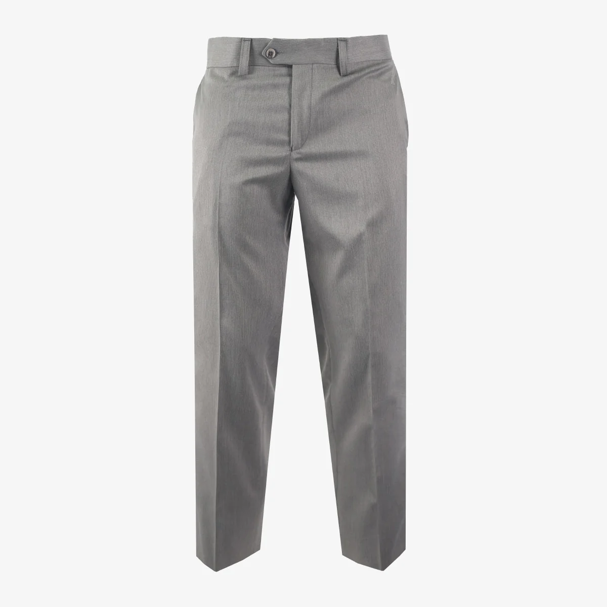 Descubre este pantalón formal slim fit en tono gris claro con un sutil diseño de mil rayas, perfecto para un look profesional y moderno. Confeccionado en una mezcla de 80% poliéster y 20% viscosa, ofrece resistencia, comodidad y un acabado suave al tacto.