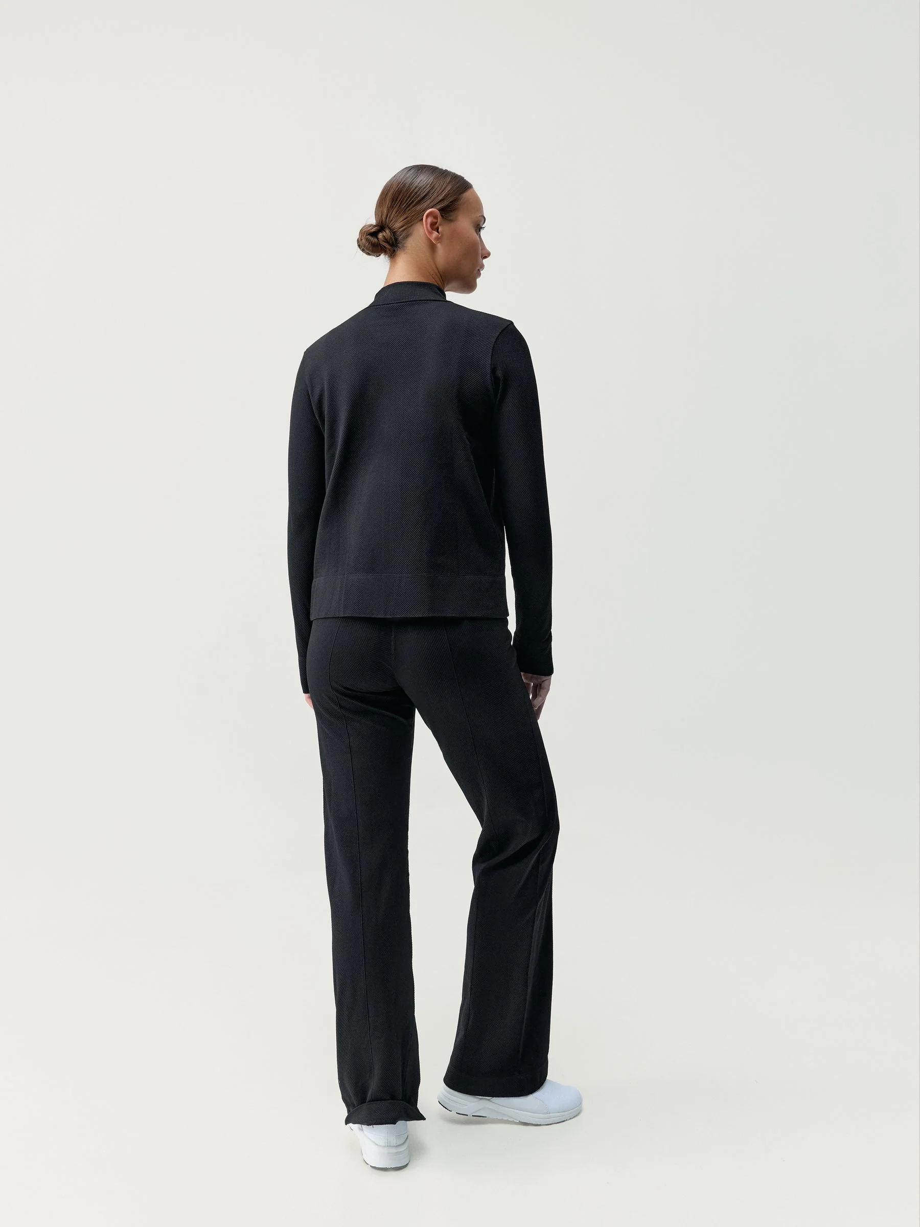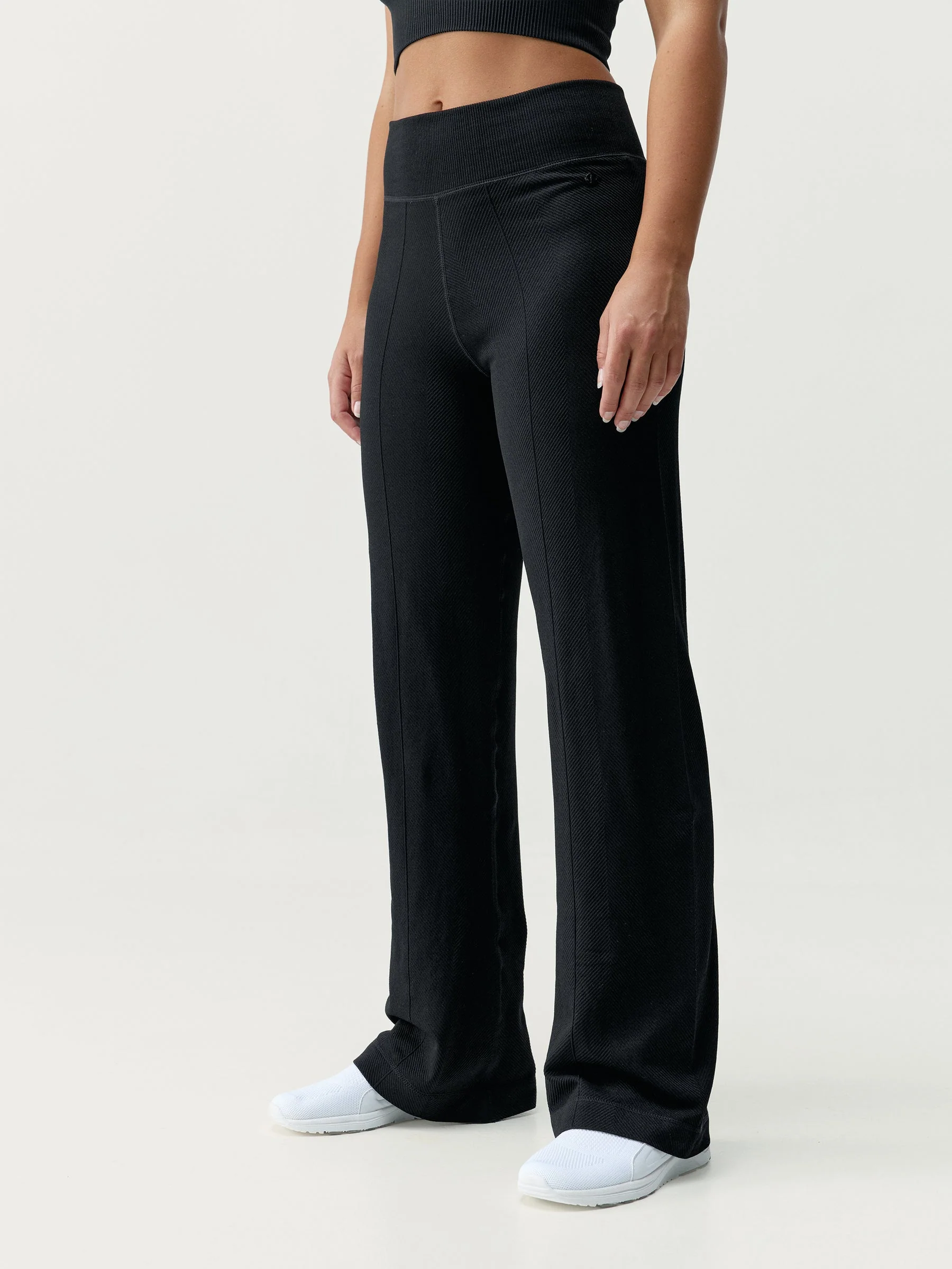 Pantalón seamless largo tipo palazzo en punto espiga. Tejido “Fit_Tech” con tecnología 3D. Caída suave y diseño ligero que favorece la libertad de movimiento. Comodidad total para todo el día, e ideal para un viaje cómodo y con estilo.