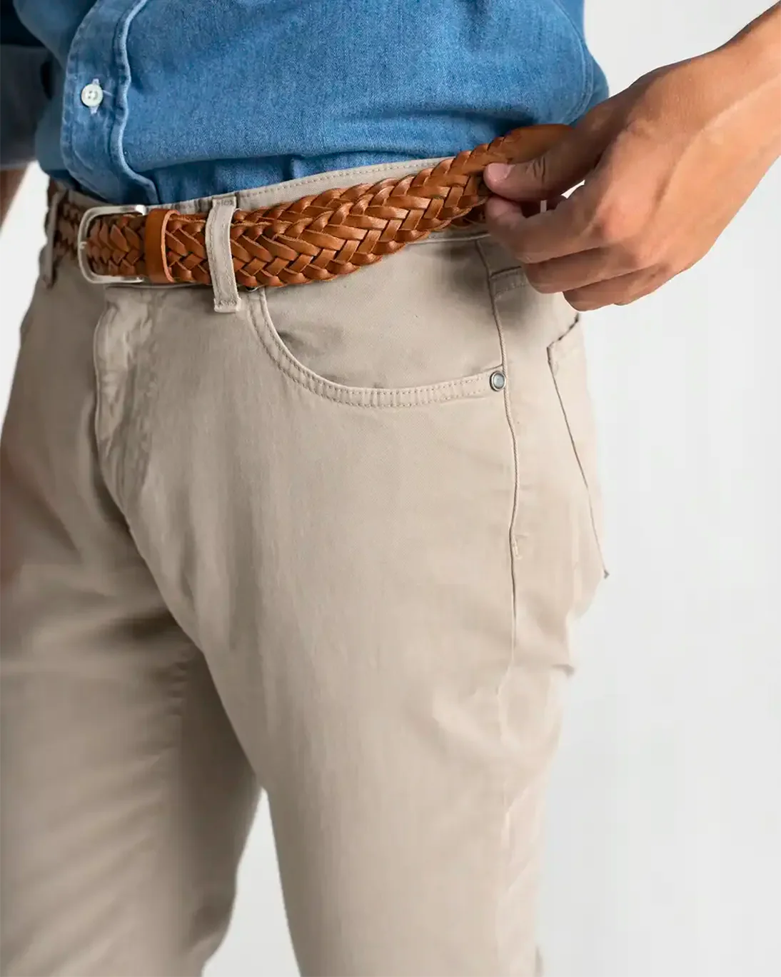Con corte slim fit, que se caracteriza por ofrecer un ajuste más ceñido, combinando comodidad en cintura y cadera con una pierna ligeramente entallada que estiliza la figura sin restar libertad de movimiento.