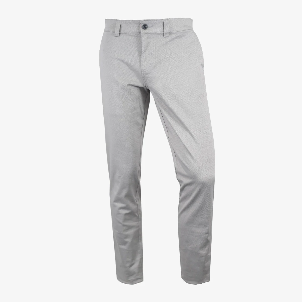 Este pantalón slim fit en gris claro presenta un diseño con mini print que añade textura sutil a la prenda, manteniendo un estilo limpio y moderno. Confeccionado en una mezcla de algodón (98%) y spandex (2%), ofrece comodidad y flexibilidad para el día a día.