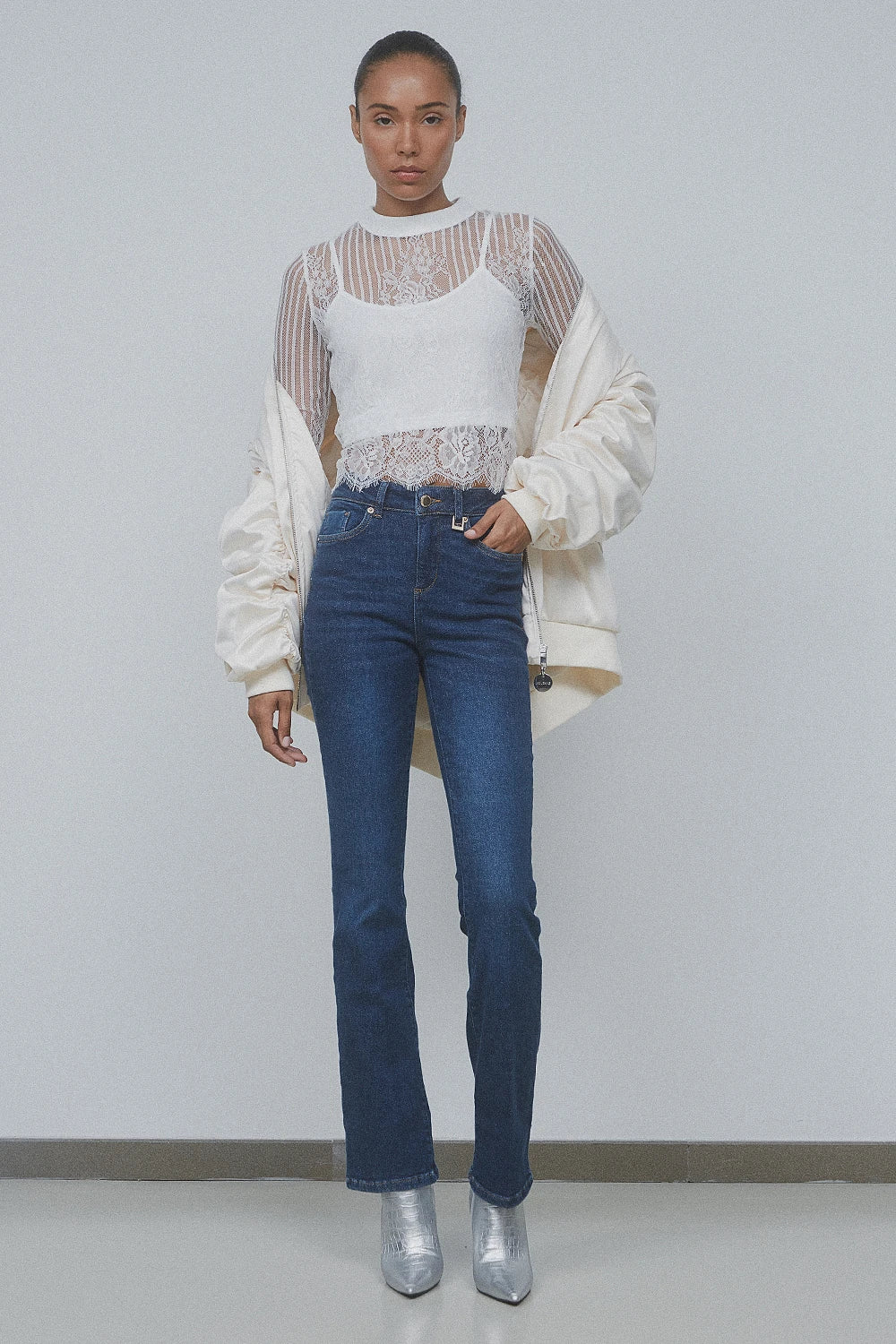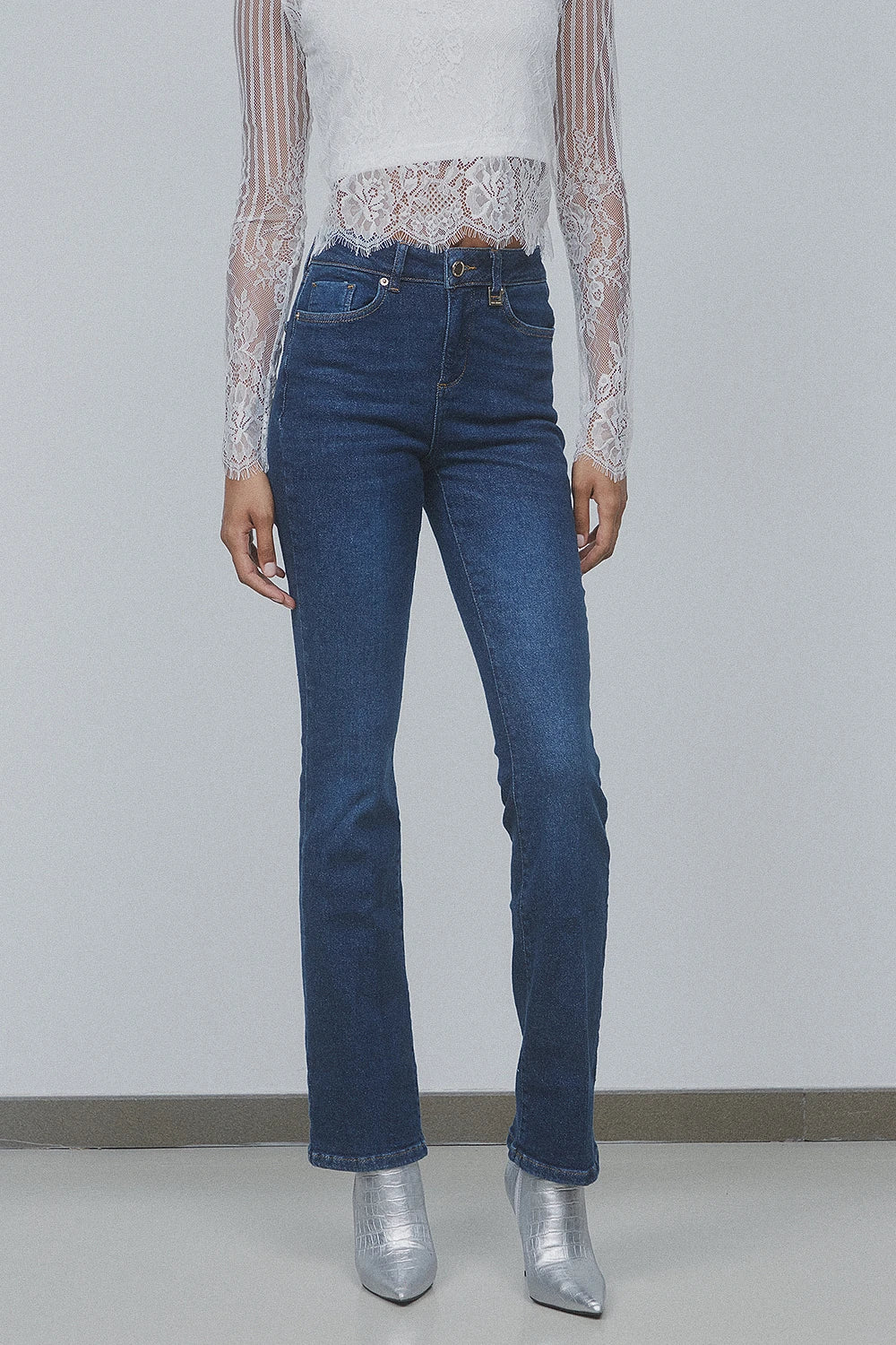 Pantalón vaquero Sophie flare, tejido elástico, cinco bolsillos, cierre frontal con botón y cremallera, corte estándar