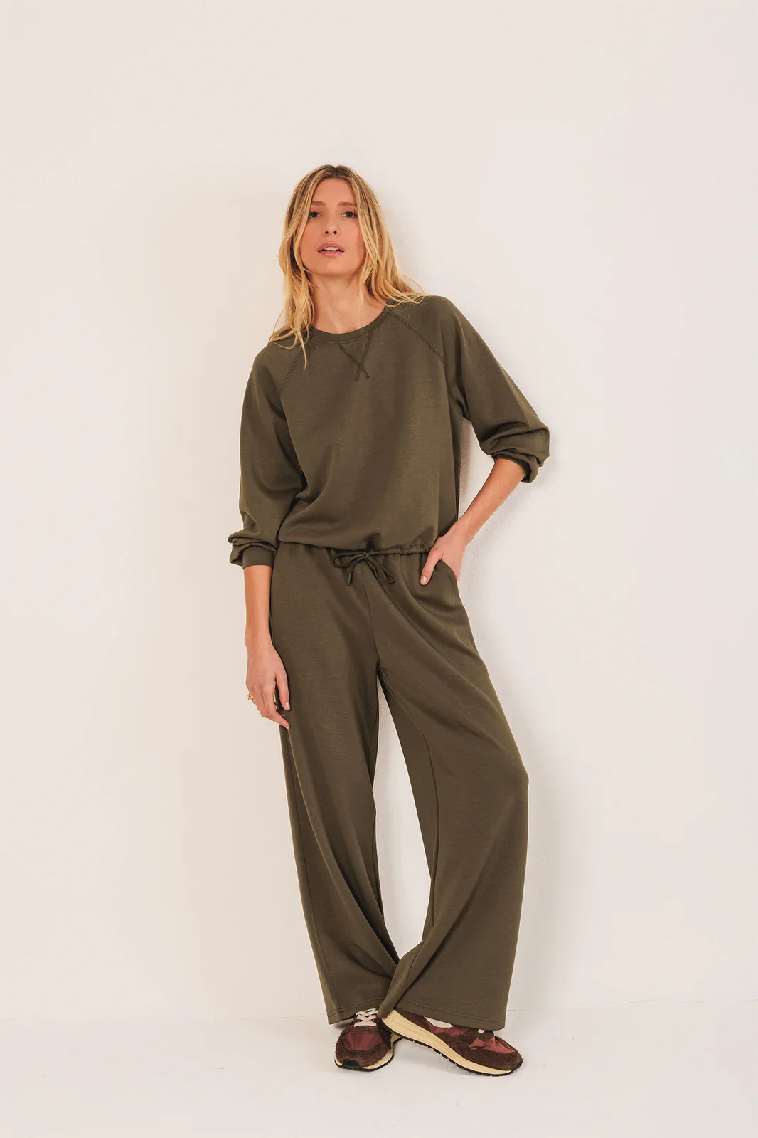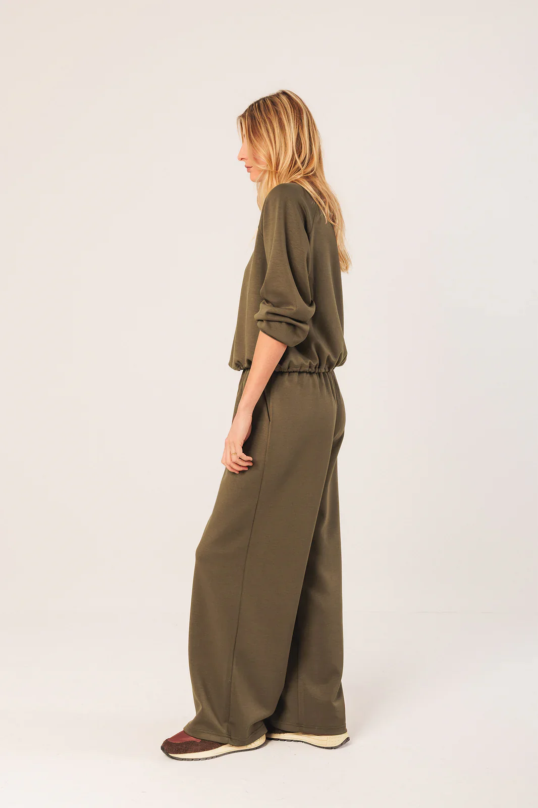 Si buscas un pantalón de pernera ancha,cómodo y ligero, entonces éste es para ti. Tiene cintura engomada y ajustable mediante lazada con tejido liviano y junto a la sudadera de la misma serie, hacen el match perfecto.