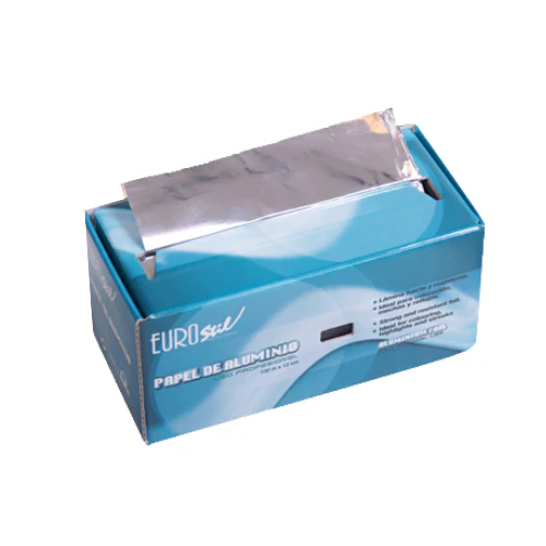 Papel Aluminio en caja dispensadora de 12cm anchura y 100 m de longitud. Especial para peluquería. Colores Oro y Azul.