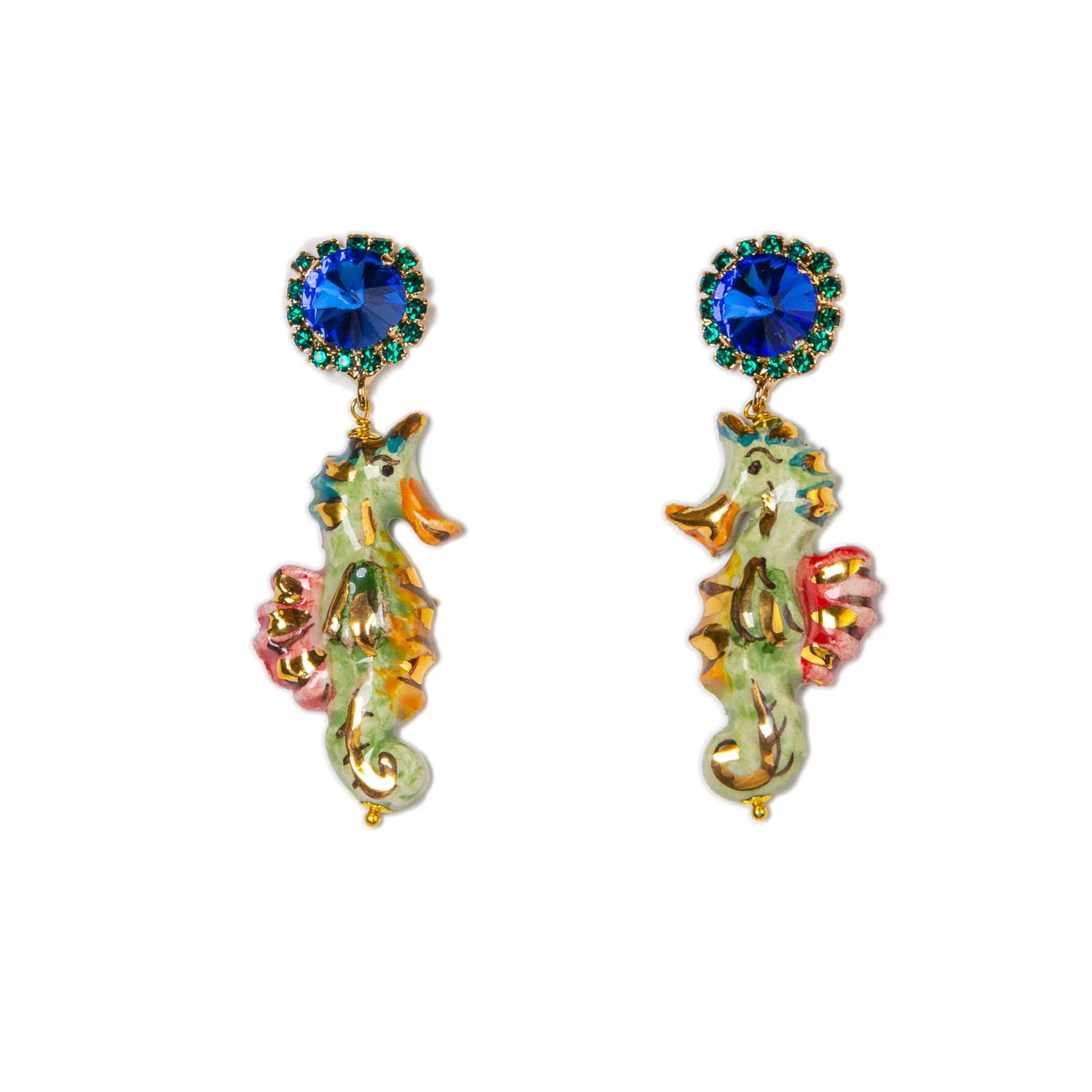 Pendientes «Caballito» está hecho de cerámica siciliana de Caltagirone. Está pintado a mano y los colores pueden variar ligeramente.