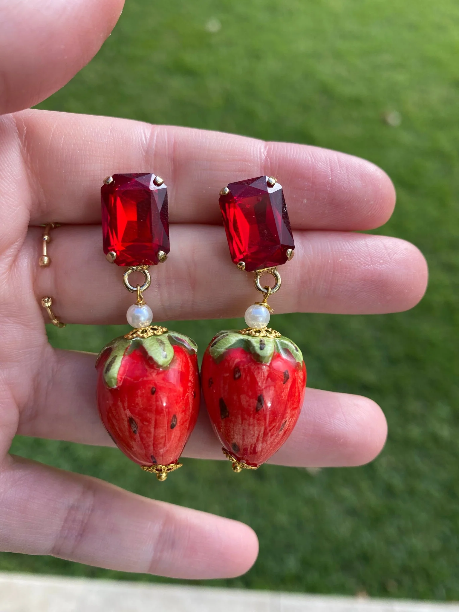 Realizado en cerámica siciliana de Caltagirone y piedra circonita roja.