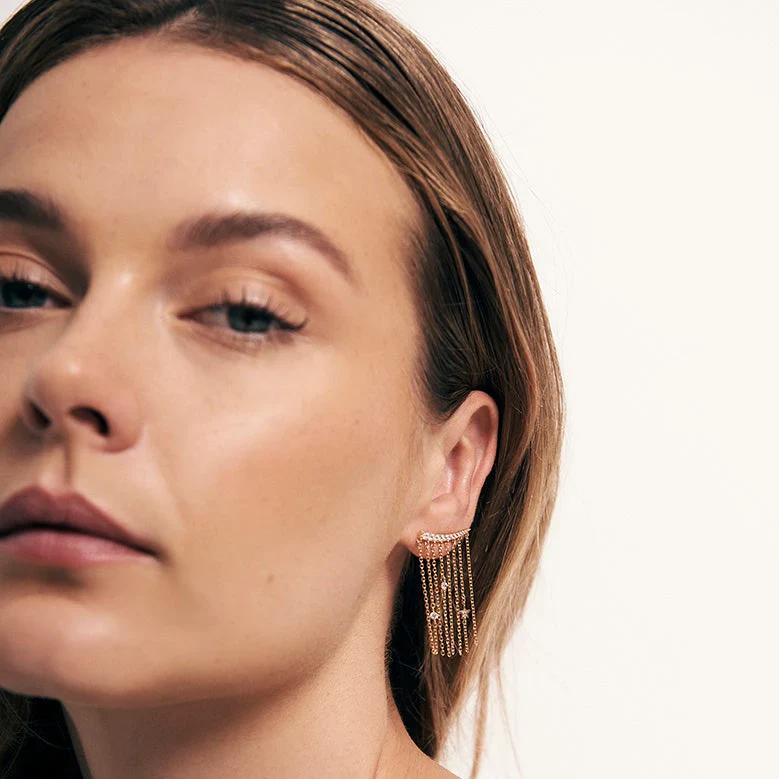 Recomendamos llevar los pendientes Monique en el segundo agujero de tu oreja para una mejor sujeción.