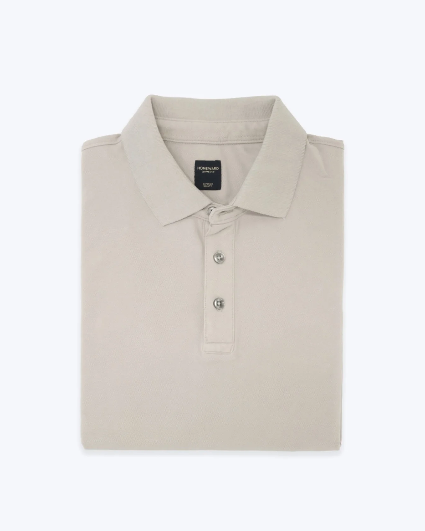 Polo de manga corta de piqué, de la marca Homeward, en color beige. Presenta cierre frontal con tres botones.
