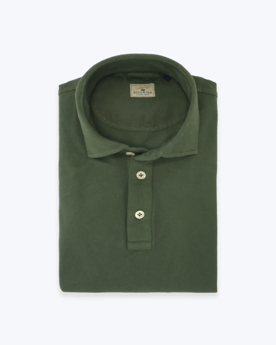 Polo de manga corta de piqué, de la marca Sonrisa, en color verde oscuro.