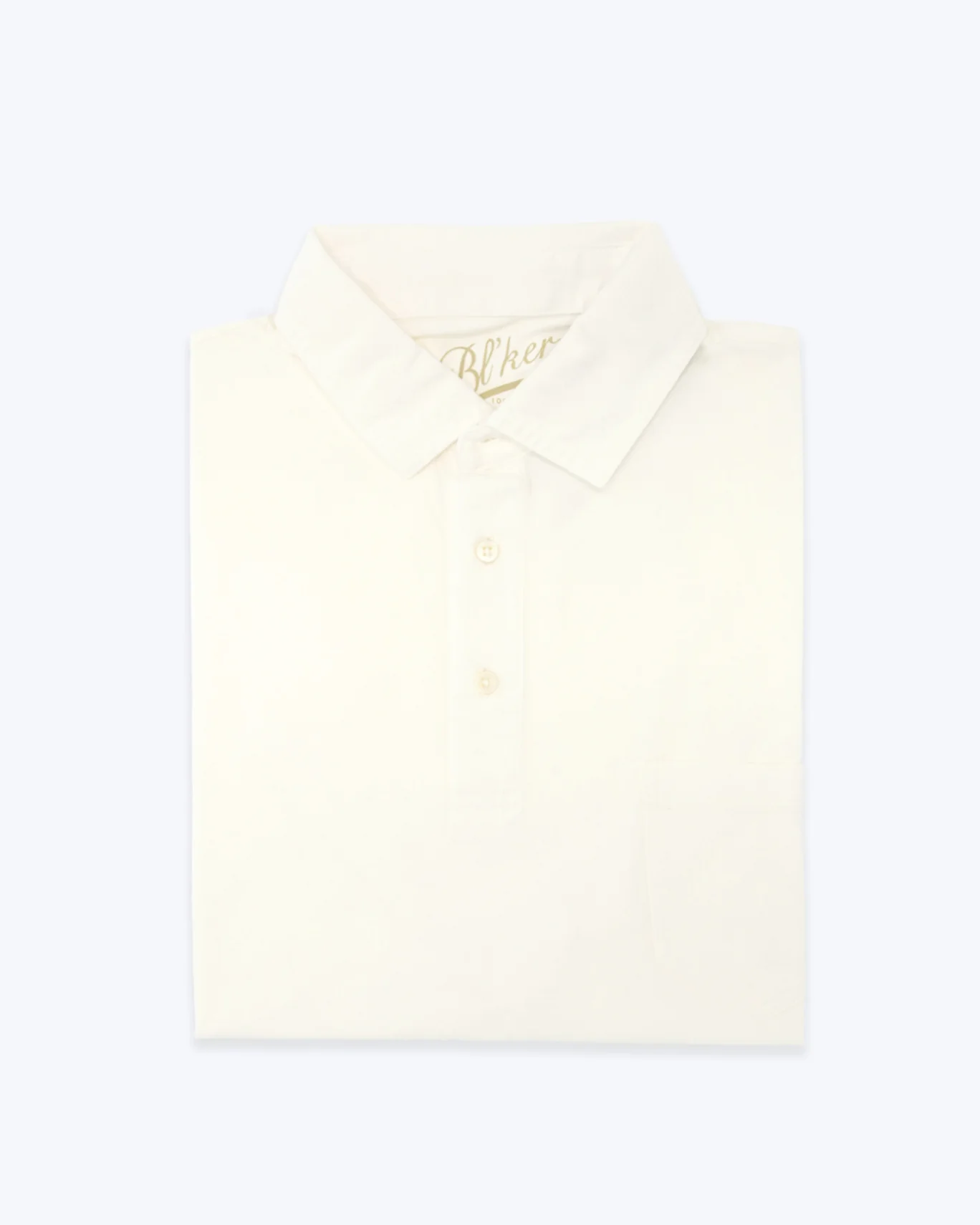 Polo de la marca Bl´ker en tejido jersey, de color blanco. Cuello clásico, cierre frontal con tres botones y bolsillo a la altura del pecho.