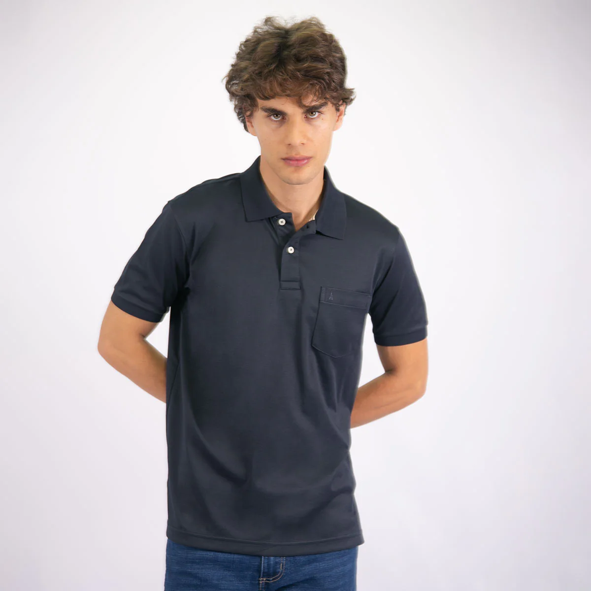 Descubre el polo de silueta regular en un azul marino profundo, diseñado para ofrecer comodidad y estilo en cualquier ocasión. Confeccionado en una mezcla técnica de algodón 60% y poliéster 40%, garantiza frescura, durabilidad y fácil cuidado para el uso diario.