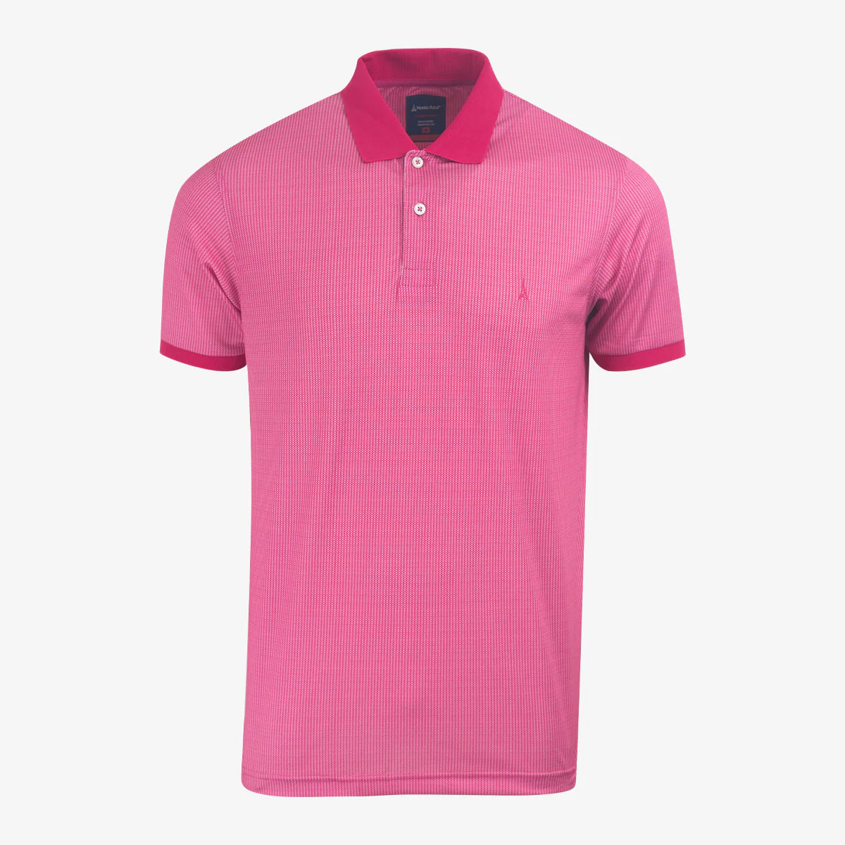 Descubre este polo para hombre con silueta regular en un vibrante tono rosado claro, diseñado para ofrecer comodidad y frescura durante todo el día.