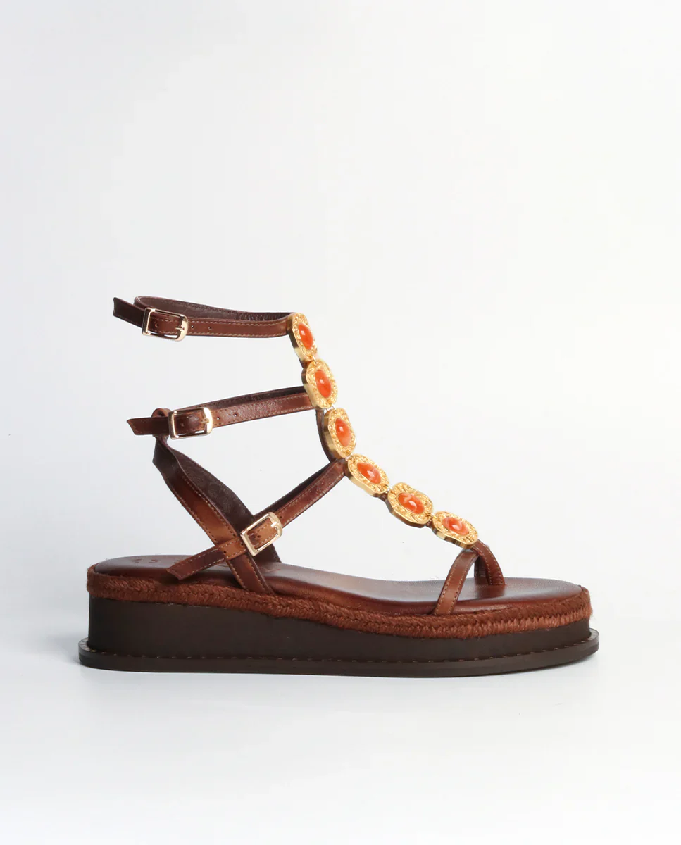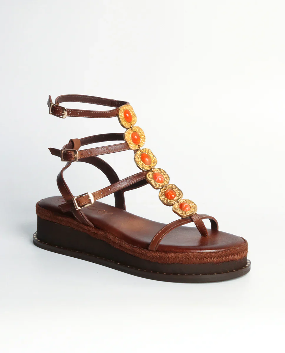 Nuestras Sandalias Griegas de Piel Tessa Plataforma Choco, son un modelo original, con triple tira y plataforma super confortable y ligeras.