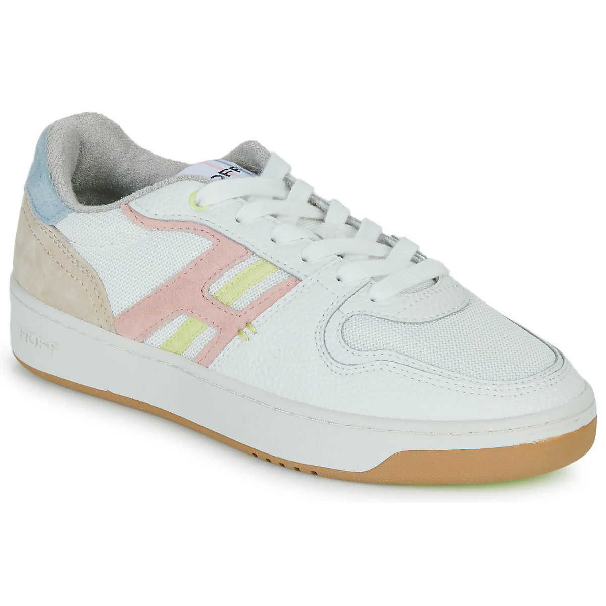 • Material Exterior: Zapatillas blancas mujer marca Hoff fabricadas en piel texturizada y textil de rejilla transpirable combinado en color blanco. Deportivas estilo bambas con partes en rosa, amarillo, azul y marrón. Logotipo en la lengüeta y parte trasera. Una zapatilla de estilo más casual perfecta para acompañarte en tus outfits del día a día.