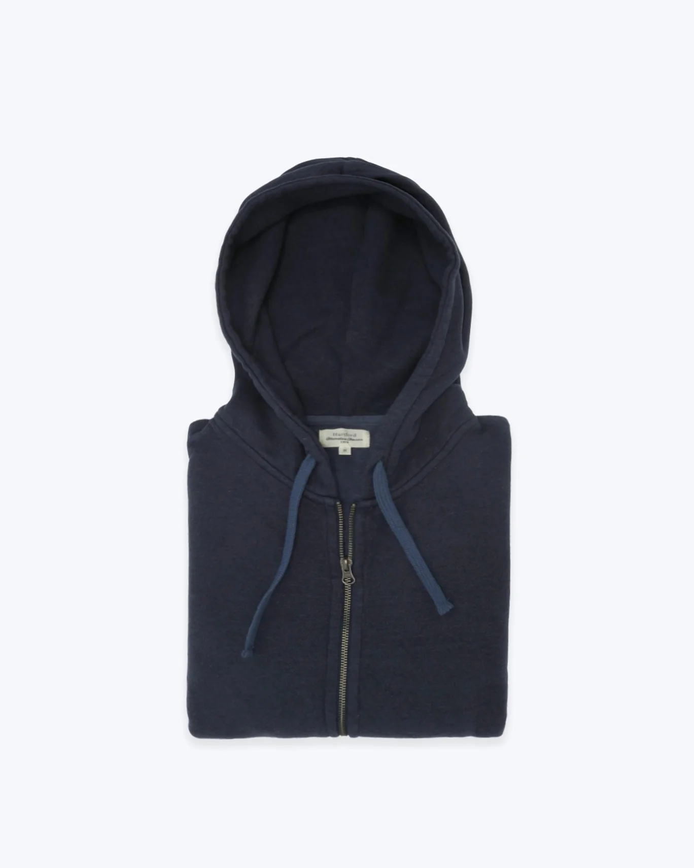 Sudadera con capucha de la marca Hartford, en color azul. Se cierra con cremallera, tiene bolsillos laterales y cordones ajustables en la capucha.